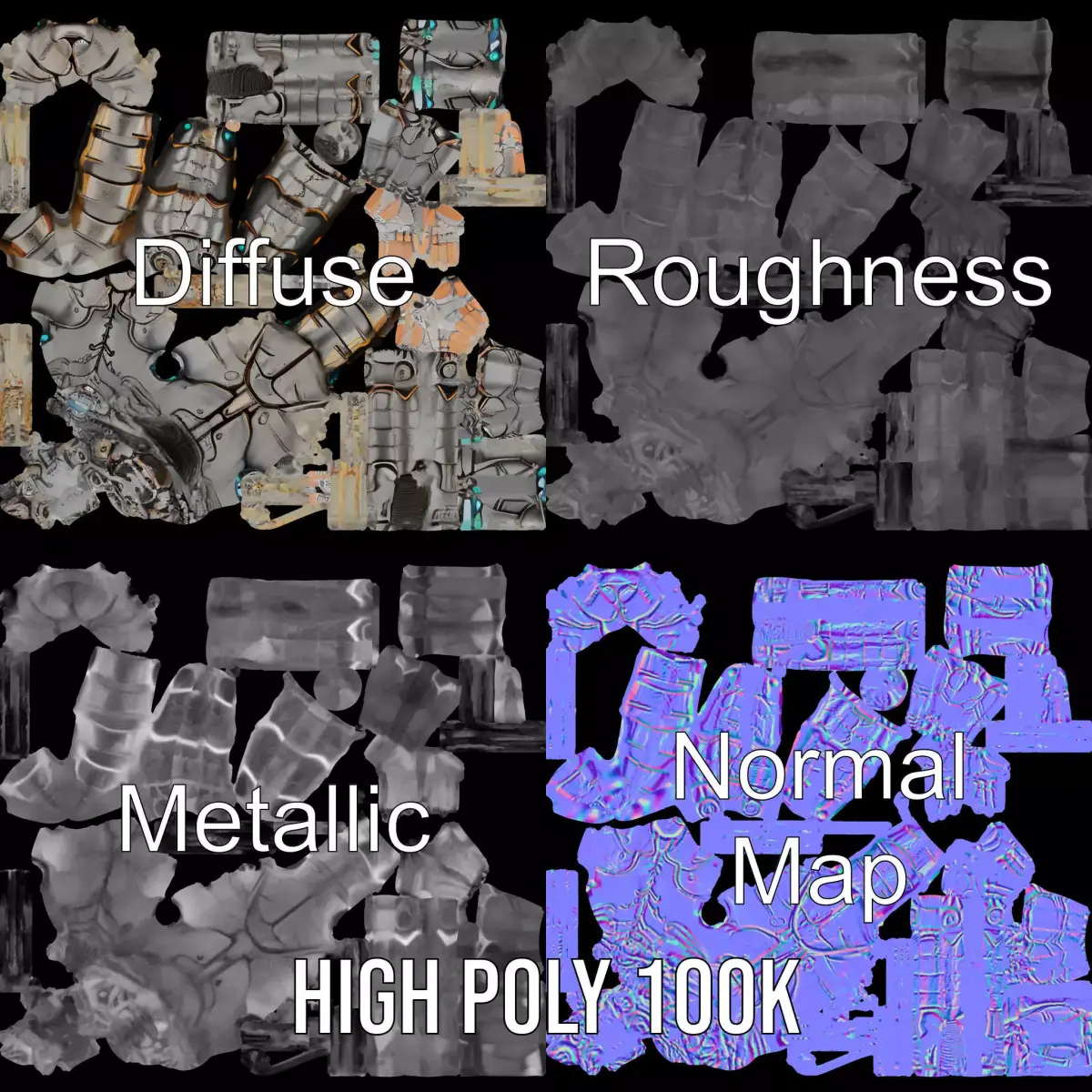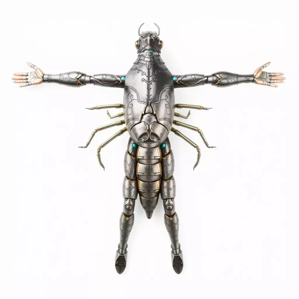 The Steampunk Beetle Warrior model pack features a detailed, futuristic insect-like humanoid design perfect for sci-fi or fantasy settings. Crafted with intricate metallic parts and accented with vibrant jewel-tones, this model stands out with its unique hybrid robotic form. The model comes in three levels of detail suitable for various applications, from games to high-end visualizations. Each model has 3 levels of detail: low-poly (1000 triangles for mobile), middle-poly (10,000 triangles for environment), and high-poly (100,000 triangles), which allows for the use of this model in production rendering (such as 3ds Max, Maya, Cinema 4D, Blender, Vray/Corona/Cycles and all others), game engines (Unity and Unreal compatible), and interactive presentations, providing a choice of detail based on the LOD System principle. This model is ideal for use in video game production, 3D films, or imaginative animation projects. All textures are PBR, Diffuse, NormalMap, and reflection/roughness/metallic, which are suitable for any modern rendering engine. All models accurately unwrapped and have no overlapping UV. All textures are 4096*4096 in size. Please consider liking and leaving a comment if you appreciated this model.