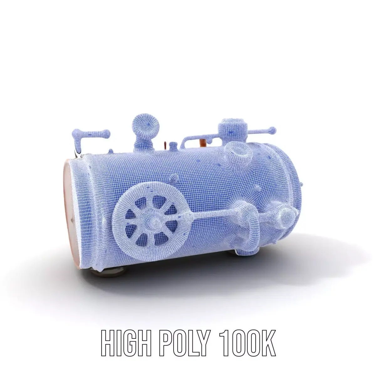 This steampunk boiler model pack features intricate details and components typical of Victorian-era machinery. Each model has 3 levels of detail: low-poly (1000 triangles for mobile), middle-poly (10,000 triangles for environment), and high-poly (100,000 triangles), which allows for the use of this model in production rendering (such as 3ds Max, Maya, Cinema4D, Blender, Vray/Corona/Cycles and all other), game engines (Unity and Unreal compatible), and interactive presentations, providing a choice of detail based on the LOD System principle. Ideal for use in steampunk-themed games, virtual reality environments, or as assets in a CGI film. Model textures are PBR, Diffuse, NormalMap, and reflection/roughness/metallic, suitable for any modern rendering engine. All models are accurately unwrapped with no overlapping UVs. Textures are 4096*4096 in size. The first image is the reference used for creating the 3D model. It is important to carefully evaluate the quality of the model by examining the preview images that display the topology and polygonal mesh. These previews (WIRE and WEB 3D Preview) clearly demonstrate how accurately the model matches the original reference and how well the geometry has been executed. Please like and leave a comment if you enjoyed the model.