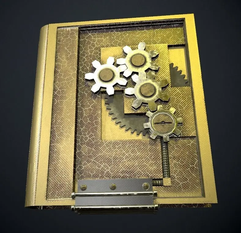 Low poly model steampunk book obj, fbx - 3765 polygons.4 texture options: blue, red, gold, old.PBR textures-Metallic Roughness.Texture resolution is 2048x2048, PNG format.Render Marmoset Toolbag 3 light settings files are present.