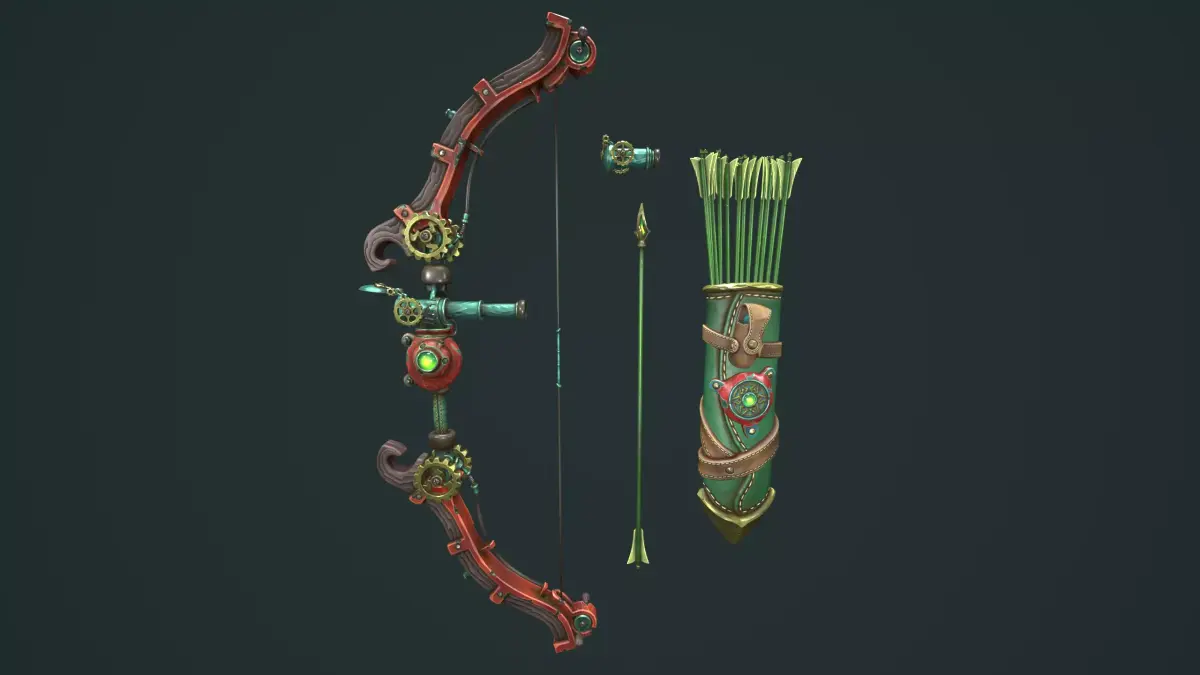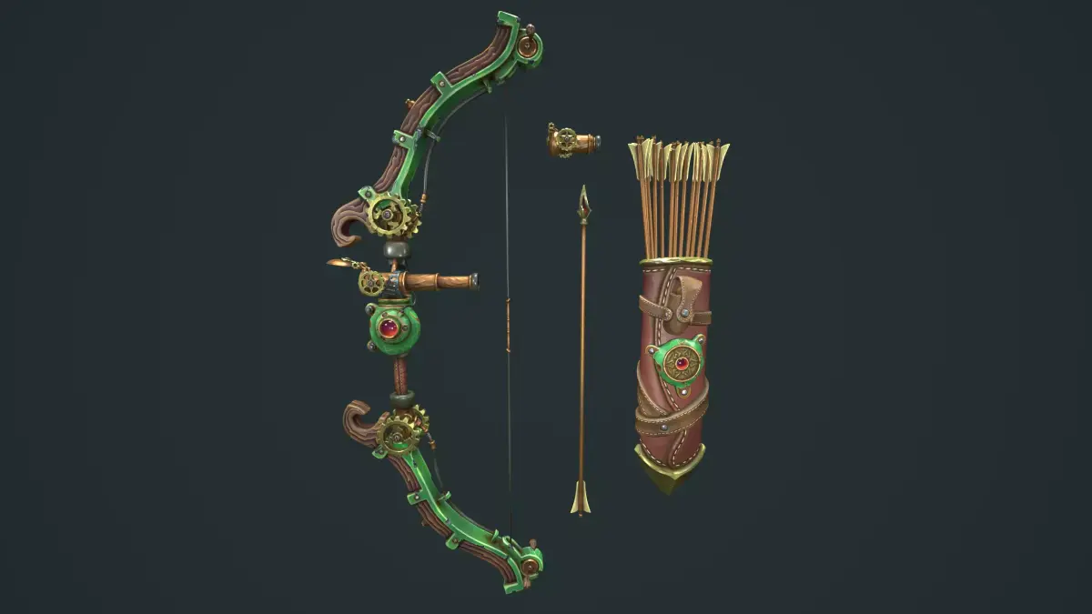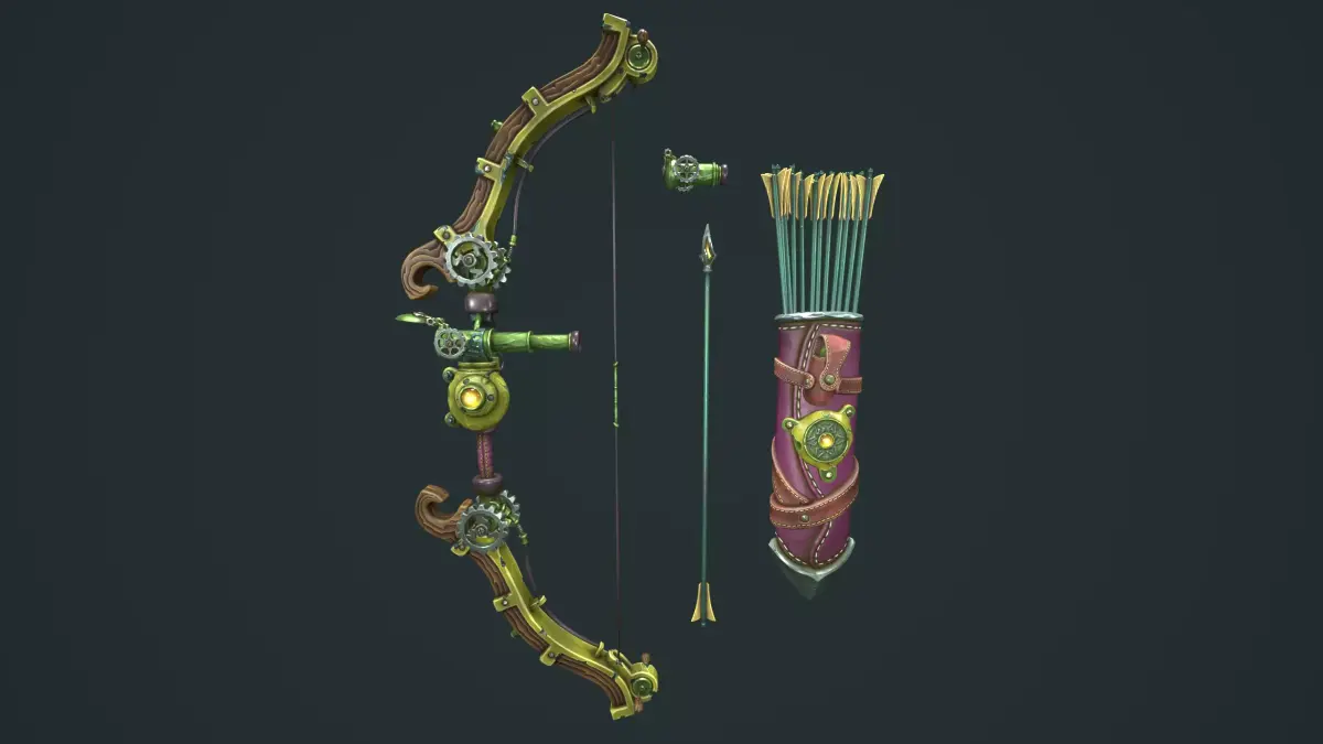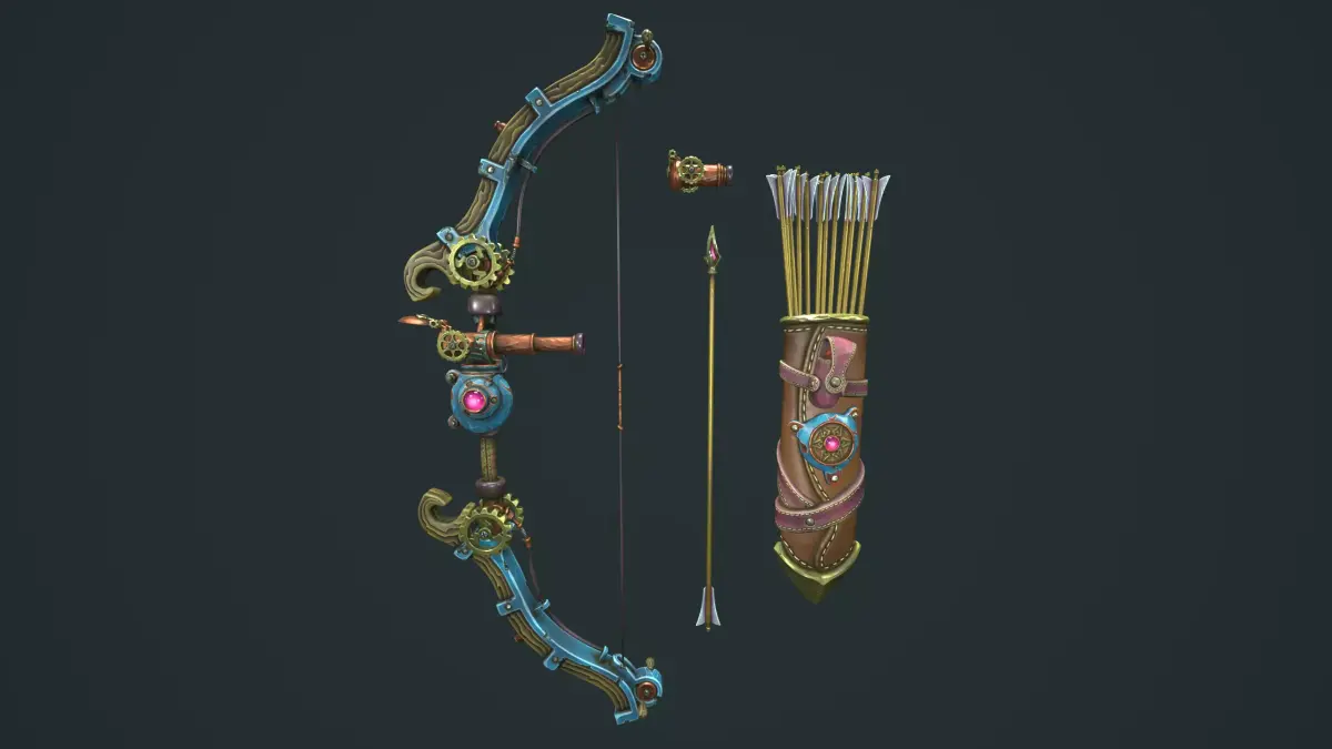 Quiver have 20 variations. 12 arrows, 5 arrows, 3 arrows, 1 arrows, empty and variations equipment.Steampunk_Quiver_1(Full arrows, Full equipment) - 11161 TrisSteampunk_Quiver_20(Empty) - 1745 Tris