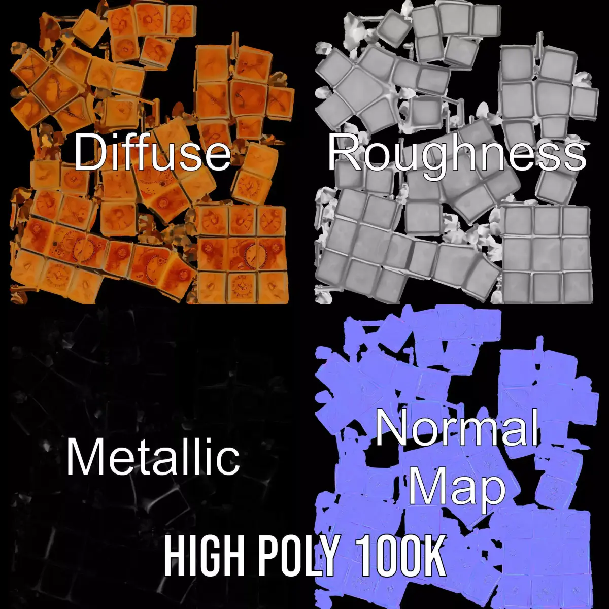 The Steampunk Clock Cube model pack features a captivating cube design with intricate clock face details, making it a perfect addition to steampunk-themed scenes or puzzles. The model offers three levels of detail, allowing for varied applications from mobile games to high-quality renders. It's an ideal choice for interactive presentations or adding unique decor to a 3D space. With PBR, Diffuse, NormalMap, and reflection textures, this model ensures high-quality visuals across modern rendering engines. Each model is meticulously unwrapped with no overlapping UVs and comes with 4096*4096 textures. If you enjoyed this model, please like and leave a comment!