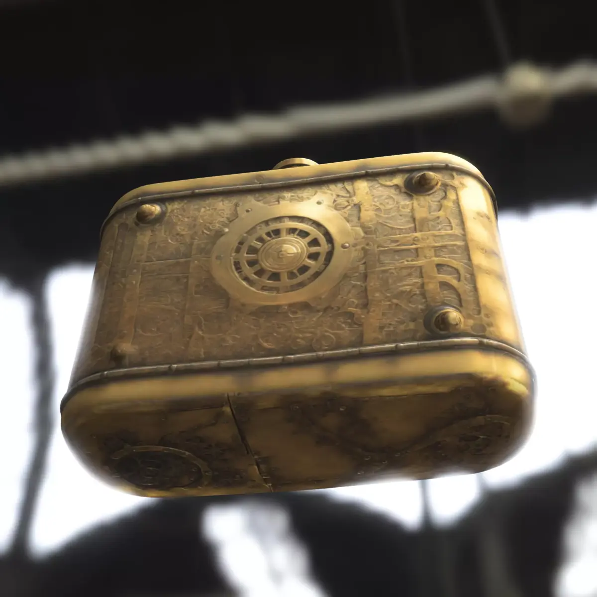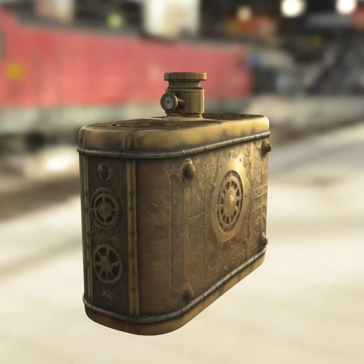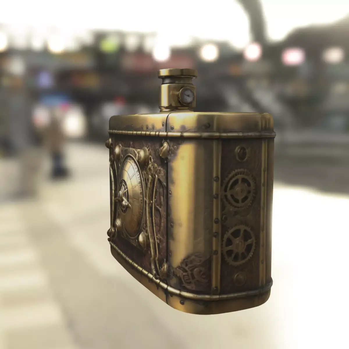 Detailed 3D model of a steampunk-inspired flask featuring a brass and leather design with mechanical clockwork details, riveted edges, and vintage aesthetics. Perfect for use as a collectible item, prop, or decorative accessory in fantasy and steampunk-themed games such as Skyrim, Bioshock Infinite, Dishonored, Roblox, Fortnite Creative, VRChat, Unity, and Unreal Engine. This asset is ideal for both digital environments and real-world applications, also prepared for 3D printing as a unique display piece, cosplay prop, or functional replica. Available in multiple formats: OBJ, FBX, STL, DAE, PLY, GLB, and Blender.