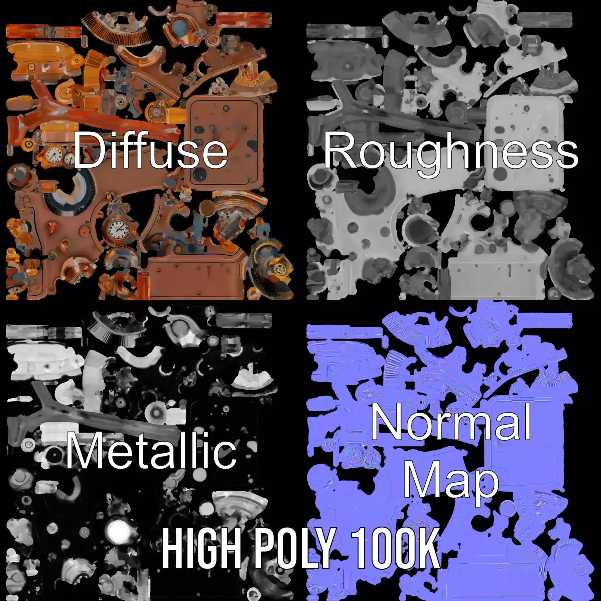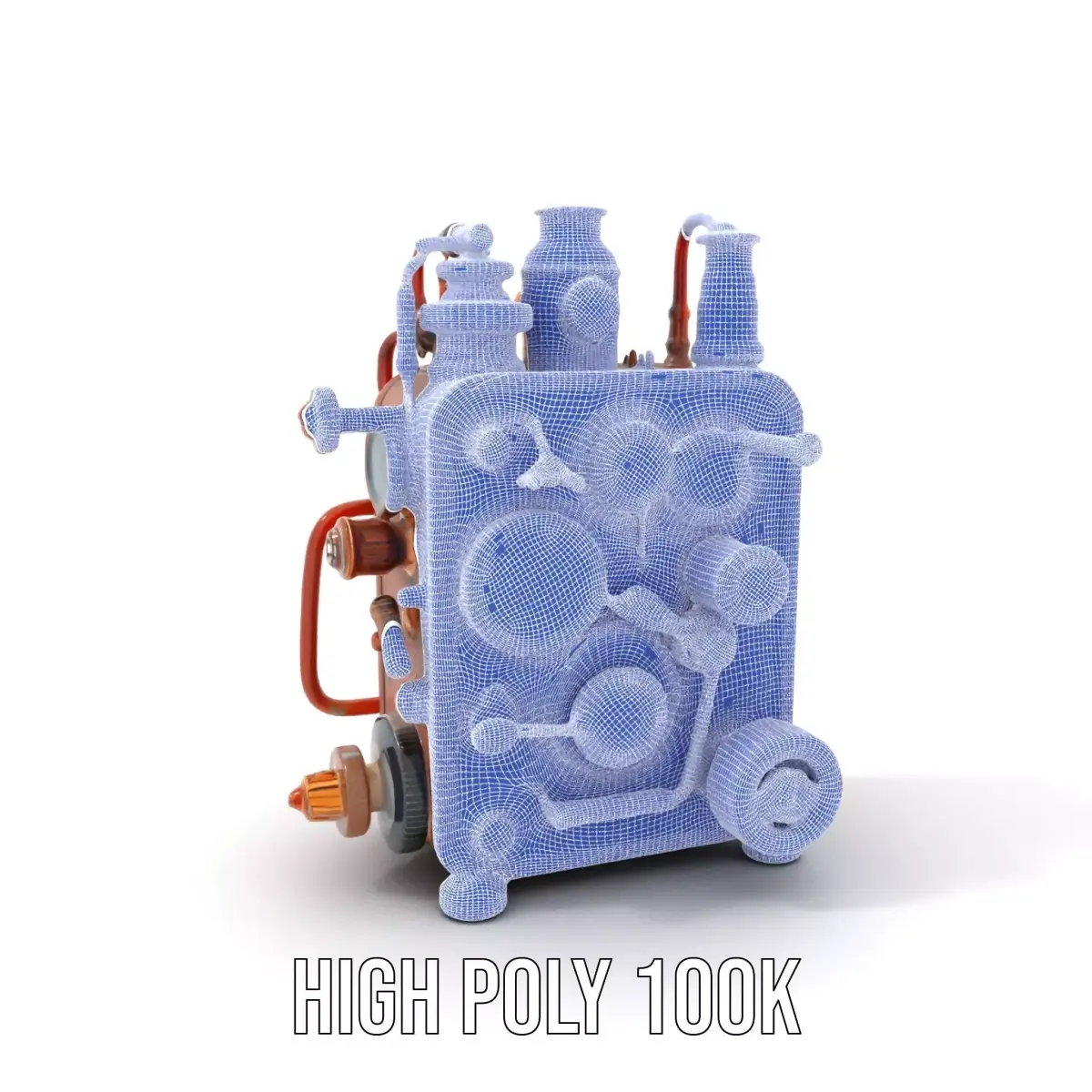 This Steampunk Copper Gadget model pack showcases intricate gears and vintage dials, bringing a touch of Victorian-era technology to your projects. Perfect for use in games, animations, and historical or fantasy scenes, it adds depth and authenticity. Each model has 3 levels of detail: low-poly (1000 triangles for mobile), middle-poly (10,000 triangles for environment), and high-poly (100,000 triangles), which allows for the use of this model in production rendering (such as 3ds Max, Maya, Cinema4D, Blender, Vray/Corona/Cycles, and all others), game engines (Unity and Unreal compatible), and interactive presentations, providing a choice of detail based on the LOD System principle. The model's textures are PBR, Diffuse, NormalMap, and reflection/roughness/metallic, which are suitable for any modern rendering engine. All models are accurately unwrapped and have no overlapping UV. All textures are 4096*4096 in size. Please like and leave a comment for the model if you liked it.