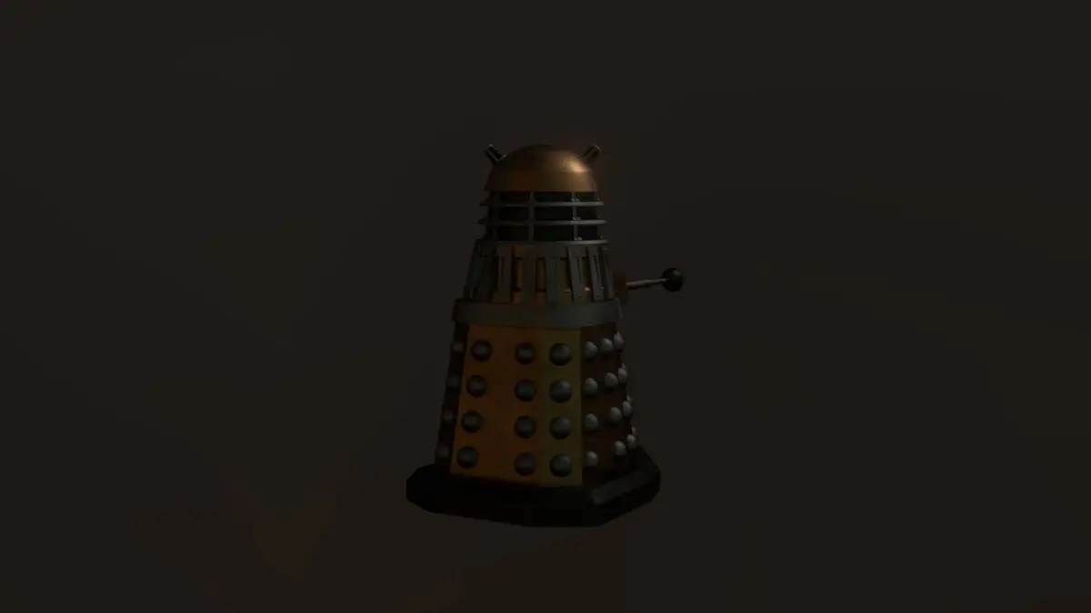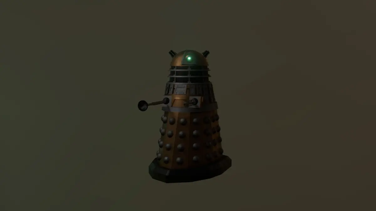Colours generated with simple noise textures with a micro bump map for a more realistic shine. Have a black Dalek, a white Dalek, a purple Dalek! Any colour you desire!