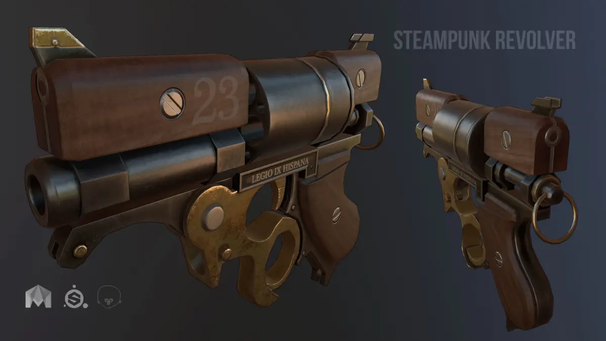 Game-ready polygon mesh and optimization steampunk revolver.Included all need files such as: