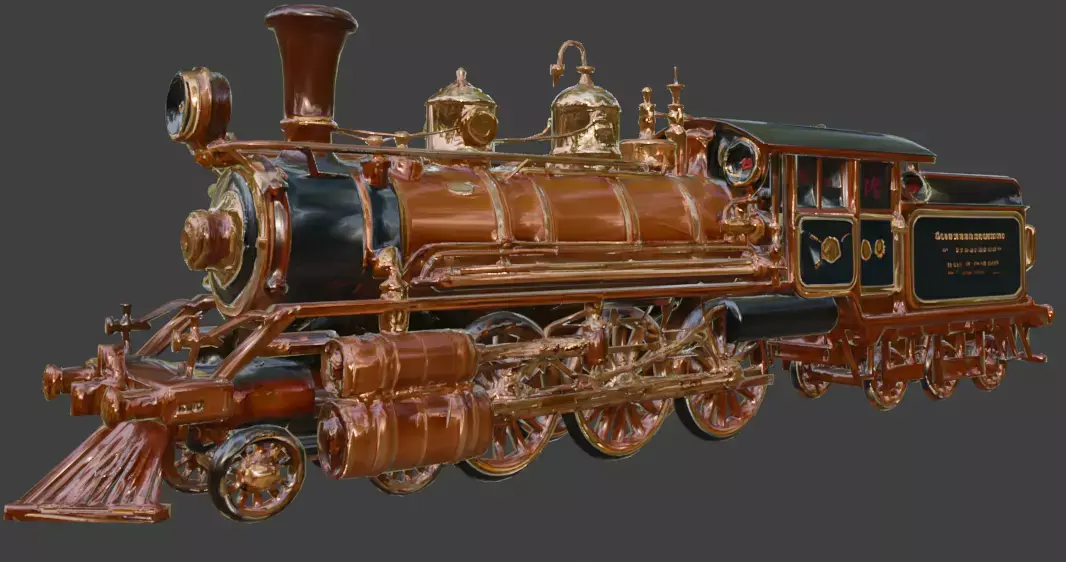 Tagssteampunk, train, locomotive, armored train, steam engine, boiler, industrial, victorian, brass, iron, machinery, vehicle, 3d model, game asset, logistics, transport, retro futuristic, detailed, mechanical, engine