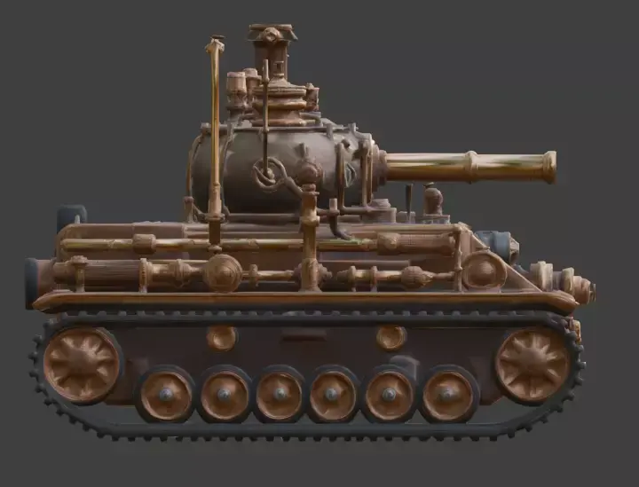 Tagssteampunk, tank, battle tank, war machine, victorian, industrial, brass, steel, steam engine, cannon, treads, machinery, vehicle, 3d model, game