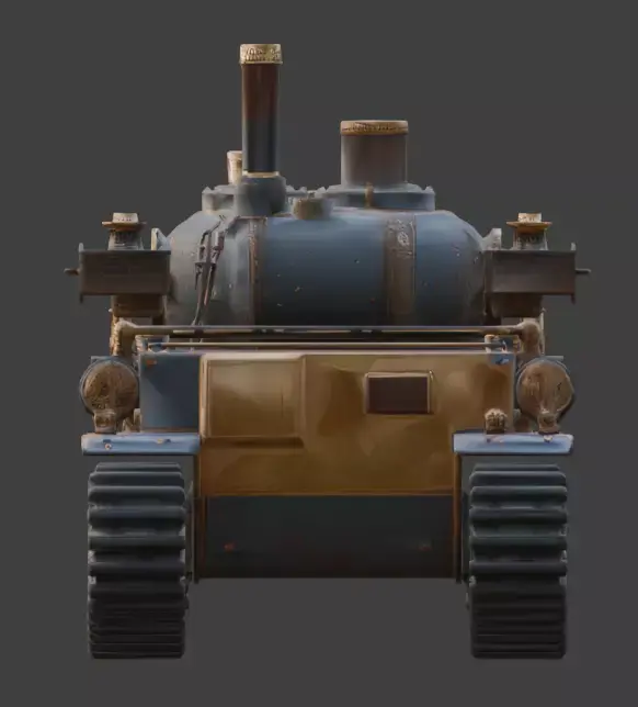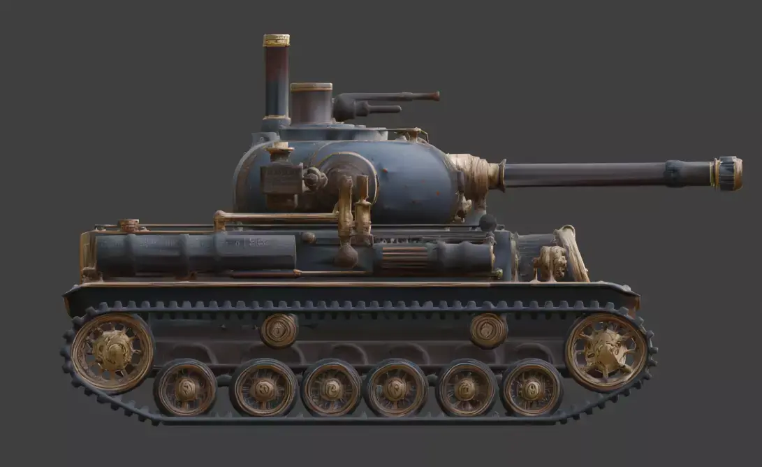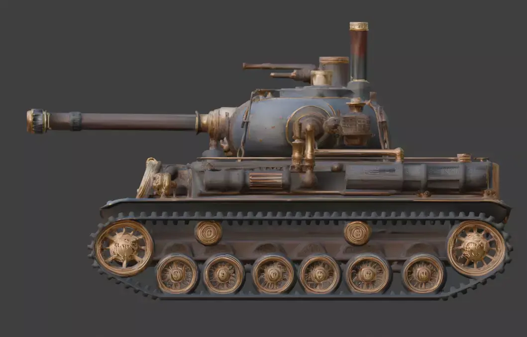 Tagssteampunk, tank, battle tank, war machine, victorian, industrial, brass, steel, steam engine, cannon, treads, machinery, vehicle, 3d model, game asset