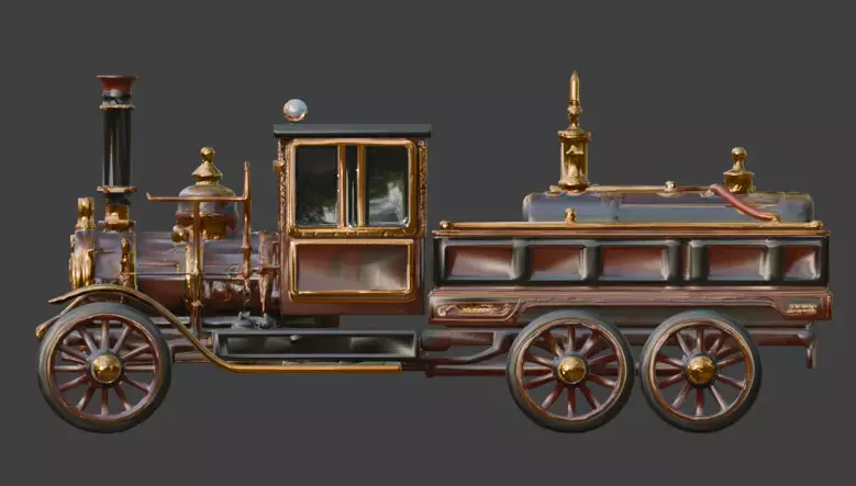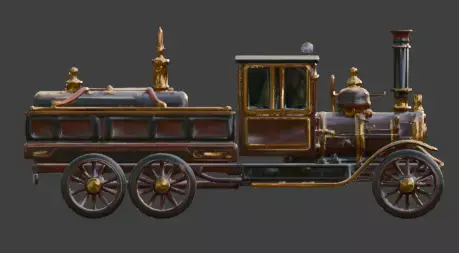 Tagssteampunk, cargo truck, heavy vehicle, industrial, victorian, steam engine, brass, copper, gears, pistons, transport, 3d model, game asset, prop, retro futuristic