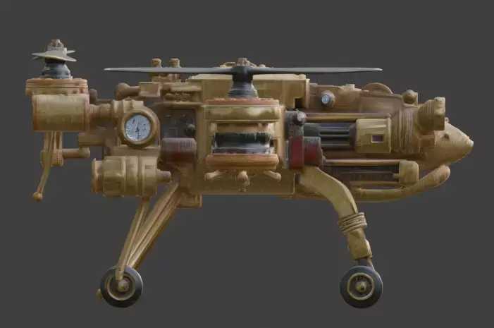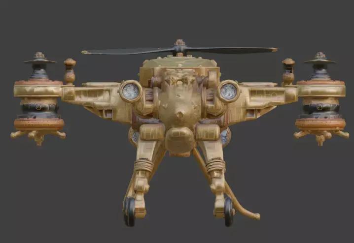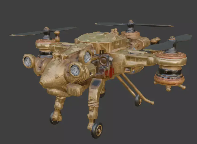 Tagssteampunk, drone, UAV, quadcopter, combat, war machine, victorian, industrial, brass, gears, steam engine, aerial vehicle, 3d model, game asset, prop