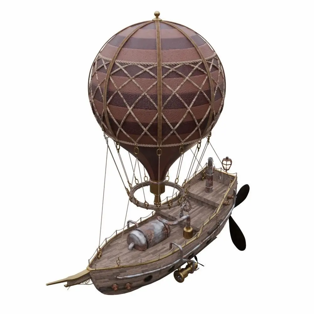 The Steampunk Hot Air Balloon can be used in any scene that you may need it for.It was colored by material nodes in Blender that can be edited. If you do not use Blender, you can create your own materials and easily put them on the ship.