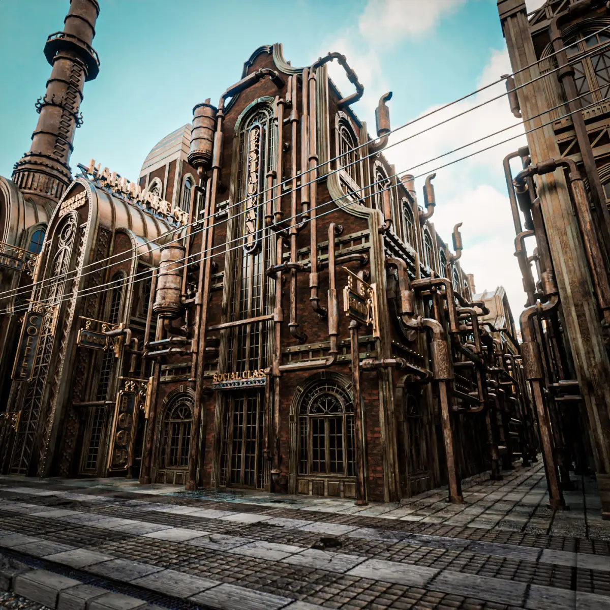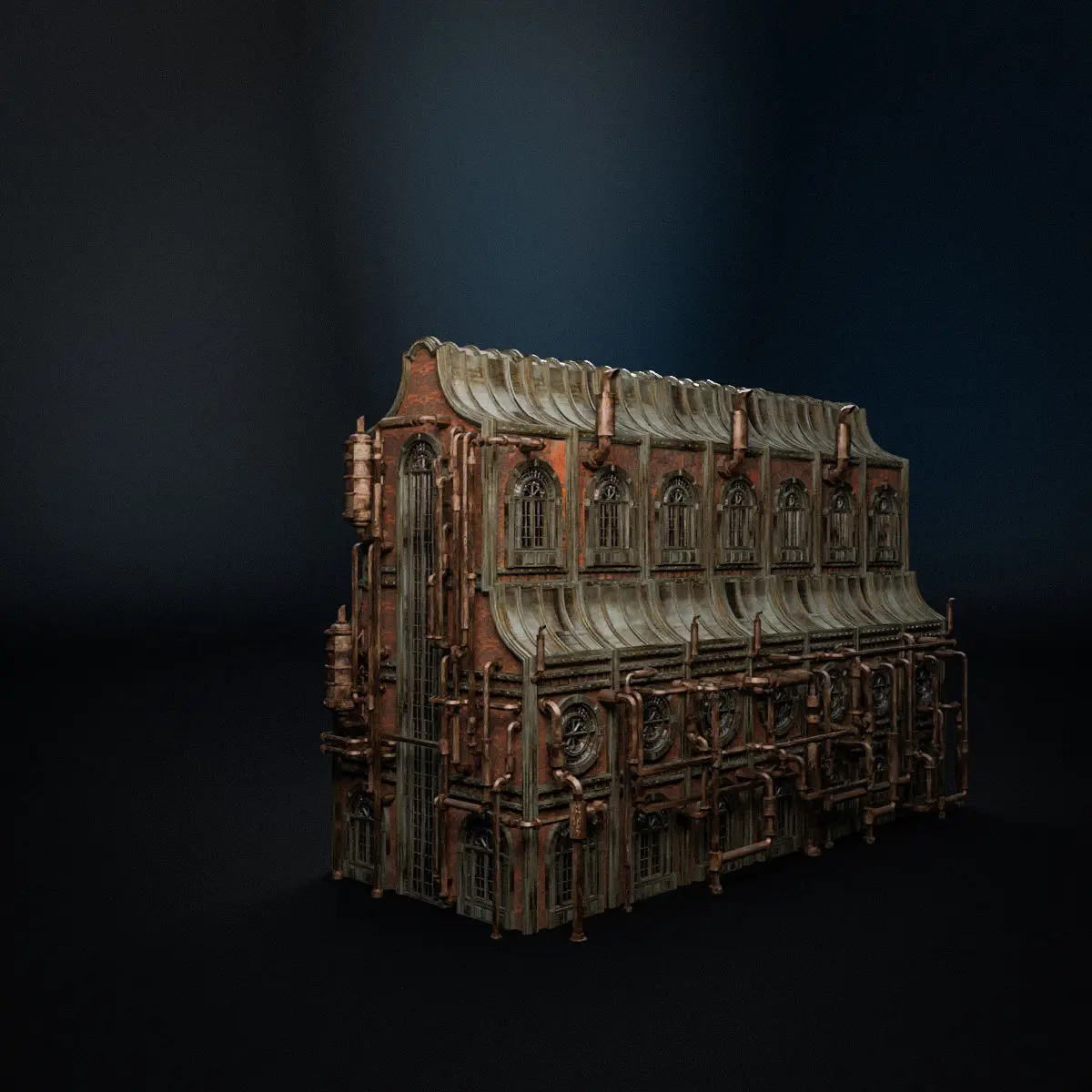 a model of a STEAMPUNK INDUSTRIAL BUILDING . everything is handmade by me with attention to detail, really good model to use for film, VFX, or game. 2K texture included. PBR ready. normal maps, specular, roughness etc. no triangle or ngon. only quad. uv mapped. medium poly 3d model. easy if you want to change the texture.(all pbr texture included in the pack). this is part of my STEAMPUNK ART DECO PACK. be sure to check my page. save more by buying the pack. thank you.