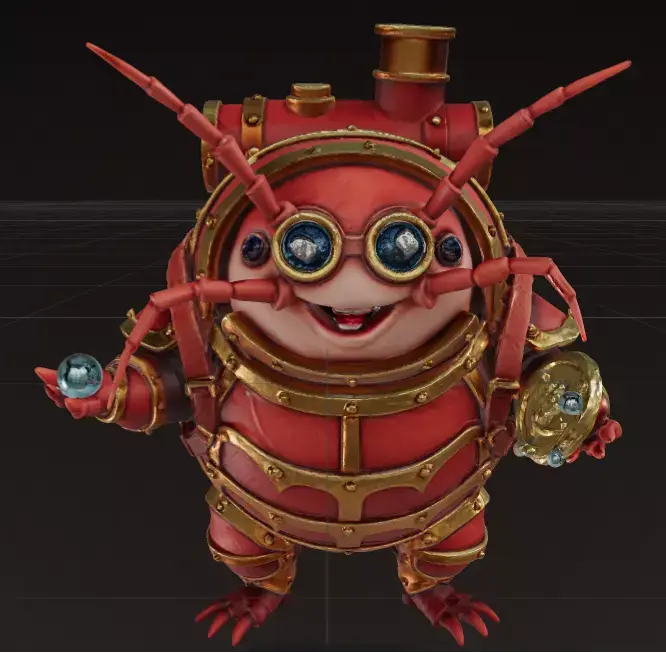 The character features a playful, expressive personality while maintaining a strong mechanical aesthetic—perfect for games, animations, collectibles, illustrations, or cinematic scenes. The design balances cute and detailed, making it ideal for both stylized and family-friendly projects as well as fantasy or steampunk worlds.