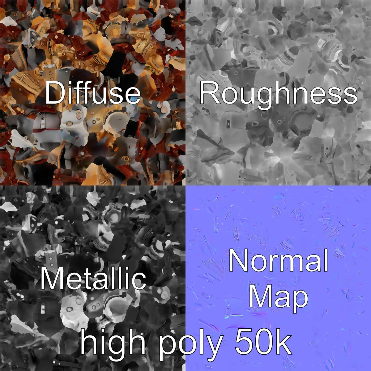 Each model has 3 levels of detail: low-poly, middle-poly, and high-poly, which allows for the use of this model in production rendering (such as 3ds Max, Maya, Cinema4D, Blender, Vray/Corona/Cycles and all other), game engines (Unity and Unreal compatible), and interactive presentations, providing a choice of detail based on the LOD System principle. This model is perfect for adding a unique, vintage aesthetic to video games, animations, or digital art projects. With its combination of brass gears, rivets, and leather accents, the armor seamlessly blends steampunk style with combat functionality. The model's textures are PBR, Diffuse, NormalMap, and reflection/roughness/metallic, which are suitable for any modern rendering engine. All models accurately unwrapped and have no overlapping UVs. All textures are 4096*4096 in size. If you like this model, please like and leave a comment.