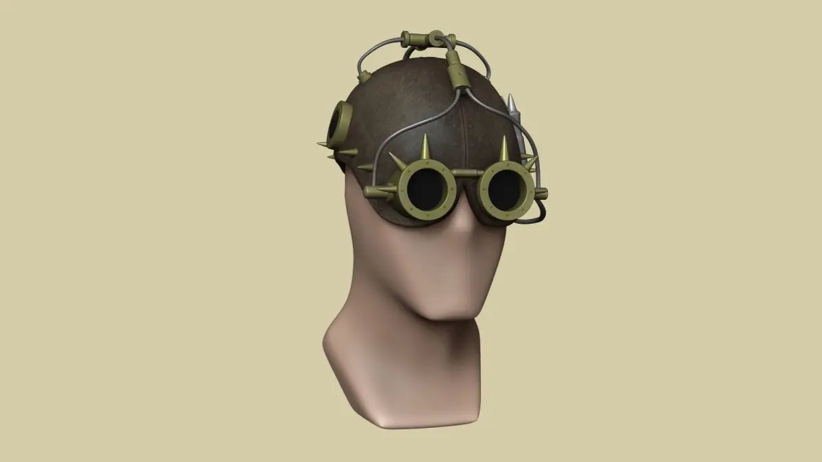 Steampunk Leather Helmet - Sci-Fi Character Design - can be used as character costume/outfit/skin, or even as a decorative item.In low poly version: 3278 polygons. In highest poly version: 639488 polygons (05 subdivisions).Leather Mask - with Goggles Glasses