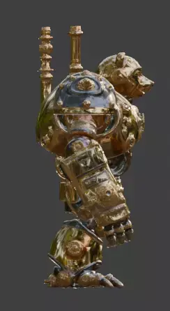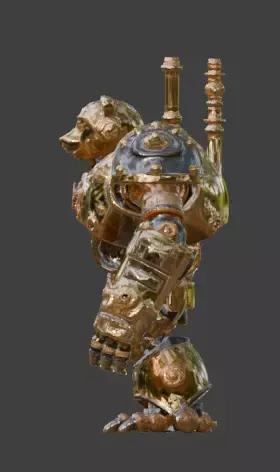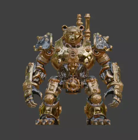 Tagssteampunk, mechanical bear, robot, automaton, armored, clockwork, gears, steam-powered, brass, iron, creature, fantasy, sci-fi, game asset, 3d model, heavy machinery, industrial, mecha