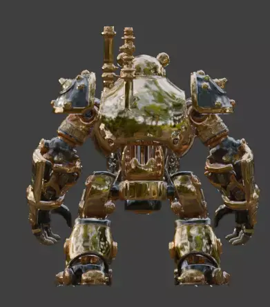 Professional PBR Materials: Features high-quality textures for brass, weathered iron, and stone-like armor plates, providing a realistic, heavy-metal aesthetic.