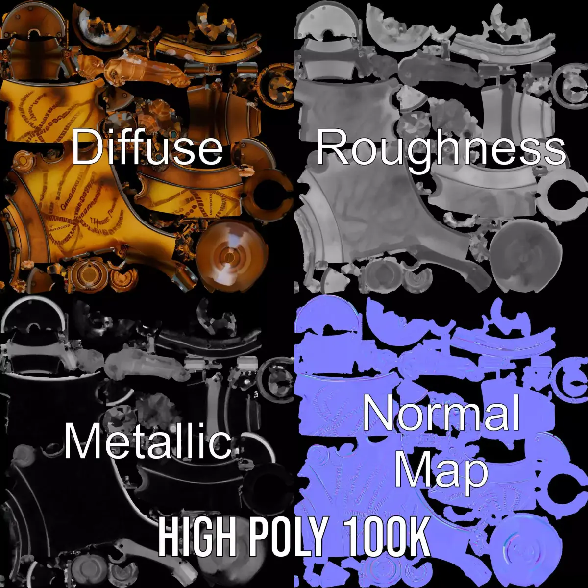 Introducing the Steampunk Mechanical Device Model Pack, perfect for adding a touch of vintage industrial charm to your projects. Each model has 3 levels of detail: low-poly (1000 triangles for mobile), middle-poly (10,000 triangles for environment), and high-poly (100,000 triangles), allowing for use in production rendering (such as 3ds Max, Maya, Cinema4D, Blender, Vray/Corona/Cycles and all others), game engines (Unity and Unreal compatible), and interactive presentations. The PBR textures include Diffuse, NormalMap, and reflection/roughness/metallic, suitable for any modern rendering engine. All models are accurately unwrapped with no overlapping UVs. Ideal for steampunk-themed games, animations, and virtual environments. All textures are 4096*4096 in size. The first image is the reference used for creating the 3D model. It is important to carefully evaluate the quality of the model by examining the preview images that display the topology and polygonal mesh. These previews (WIRE and WEB 3D Preview) clearly demonstrate how accurately the model matches the original reference and how well the geometry has been executed. If you like this model pack, please like and leave a comment!