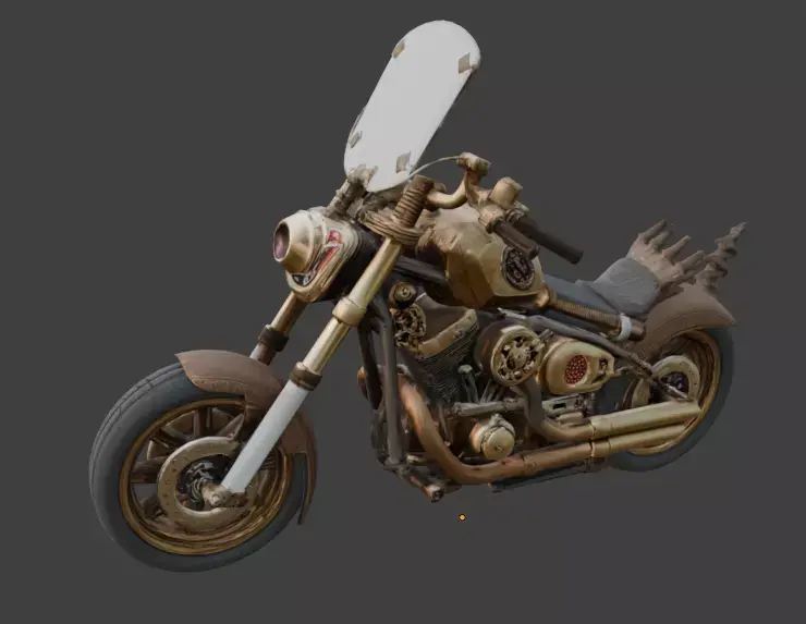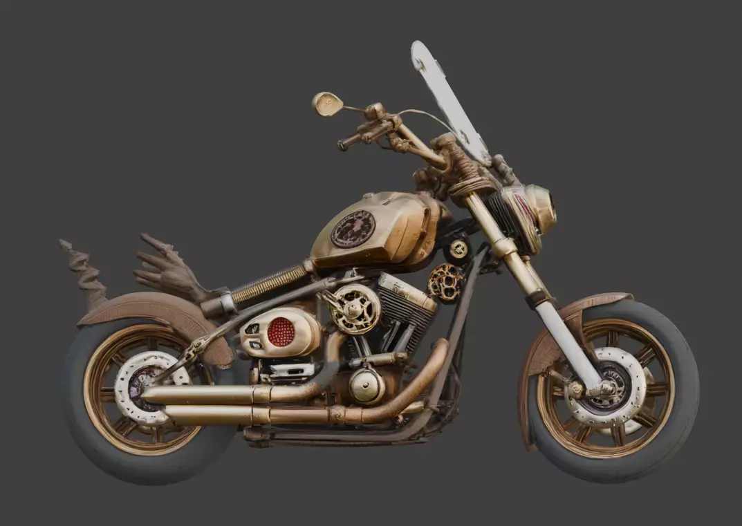 TagsSteampunkMotorcycleChopperDragonMechanicalIndustrialGearsBrassCopperAntique3D-ModelGame-AssetBespokeFantasyVictorianWeatheredVehicleCustom-BikeClockworkExotic