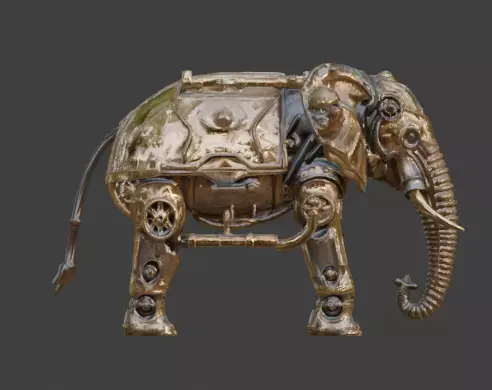 Tagssteampunk, elephant, mechanical, automaton, robot, armored, industrial, gears, steam-powered, brass, mammoth, sci-fi, fantasy, game asset, 3d model, vintage, heavy machinery, victorian, clockwork