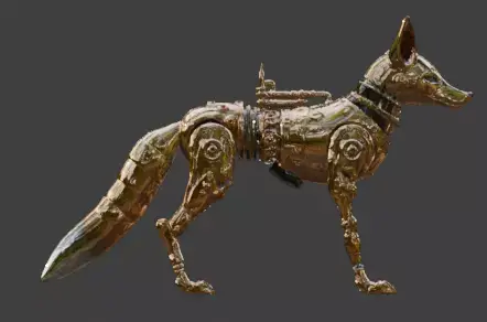 Tagssteampunk, fox, mechanical, automaton, robot, clockwork, gears, brass, copper, sci-fi, fantasy, game asset, 3d model, vintage, industrial, agile, animal, victorian, pistons, sleek