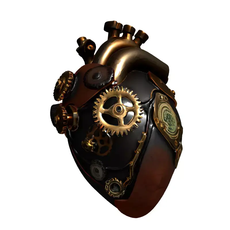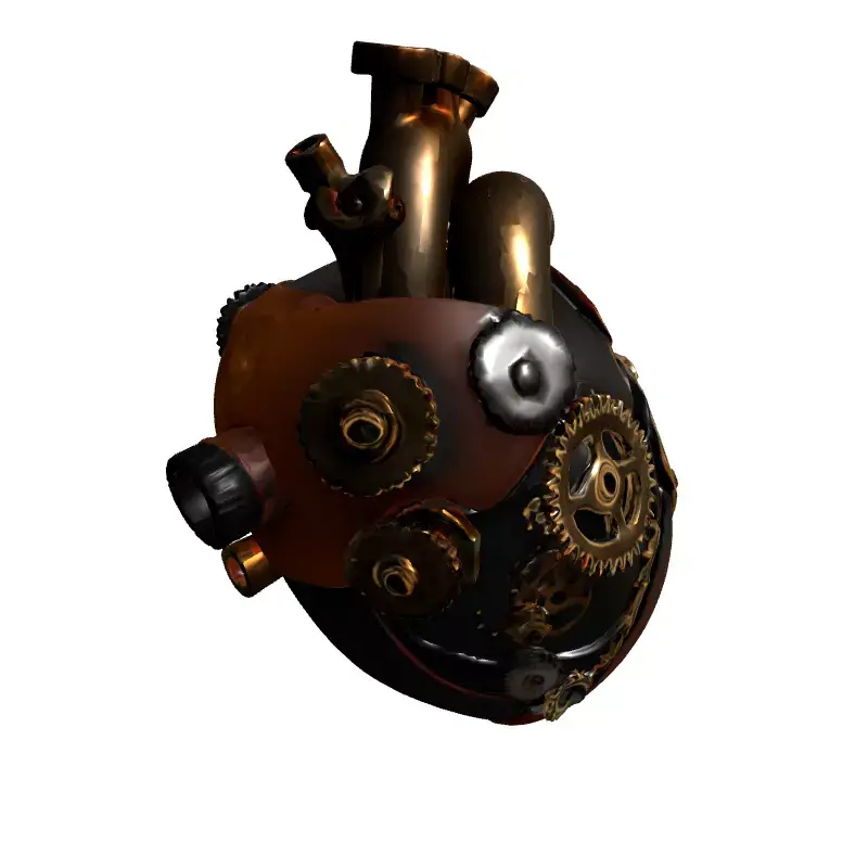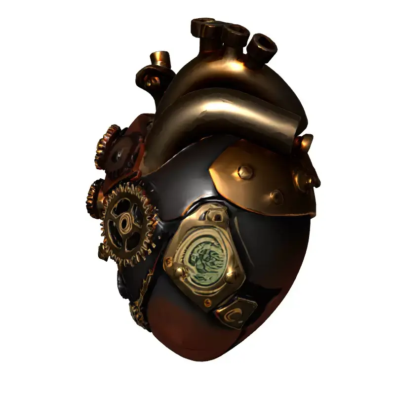 This highly detailed 3D model presents a captivating steampunk mechanical heart, an intricate blend of biological form and industrial design. It features finely crafted gears, robust brass piping, dark metallic panels, and textured copper or leather accents, evoking a Victorian-era mechanical aesthetic. This versatile asset is perfect for a wide range of creative projects, including immersive game development, where it could serve as a unique prop or central artifact in fantasy, sci-fi, or RPG settings. It is also ideal for augmented reality (AR) and virtual reality (VR) applications, providing an engaging interactive element. Digital artists and animators can utilize this model for stunning renders, concept art, or dynamic sequences. Its robust design also makes it suitable for high-quality 3D printing, allowing for physical display as a decorative piece or a collectible. The model is optimized for both real-time applications with efficient polygon counts and high-resolution static renderings, ensuring excellent performance across various platforms. It comes with clean, organized topology, is fully UV unwrapped, and features PBR (Physically Based Rendering) textures for realistic material representation. Supported file formats typically include GLB, OBJ, FBX, USD, DAE, and STL, ensuring broad compatibility with major 3D software and engines. Whether for a dark fantasy world or an industrial sci-fi scene, this steampunk heart adds a unique touch of intricate engineering.