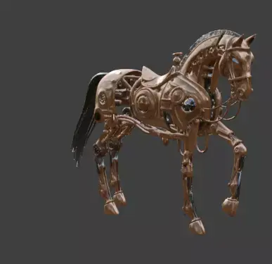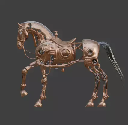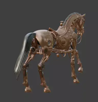 Tagssteampunk, horse, mechanical, automaton, robot, stallion, copper, steel, clockwork, gears, steam-powered, equestrian, sci-fi, fantasy, game asset, 3d model, vintage, industrial, pistons, victorian