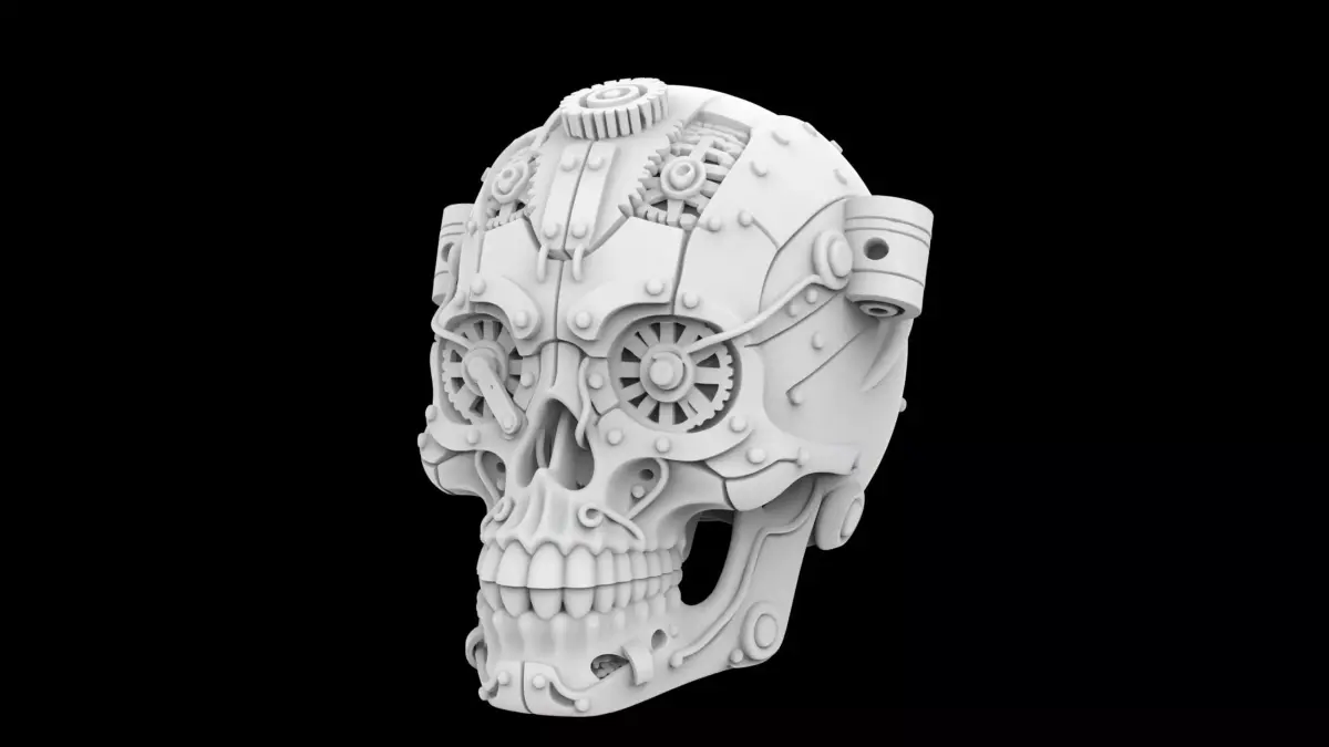 Steampunk Mechanical Skull 3D Print Model | Cyborg Skull STL | Fantasy Robotics Decoration