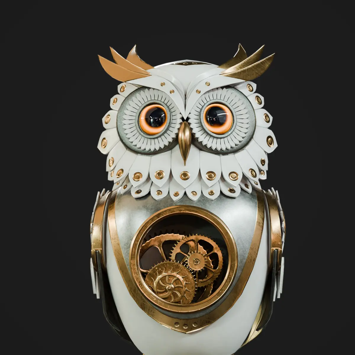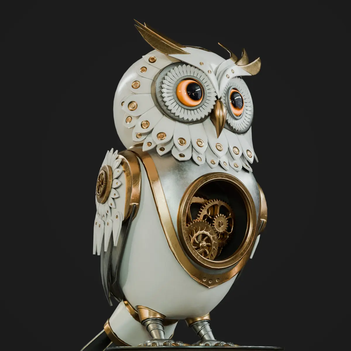 Add a touch of elegance and mechanical charm to your project with this stunning steampunk owl automaton! Designed with intricate clockwork details, polished metal plating, and a sophisticated blend of white, gold, and silver hues, this model is perfect for steampunk, fantasy, or sci-fi environments.
