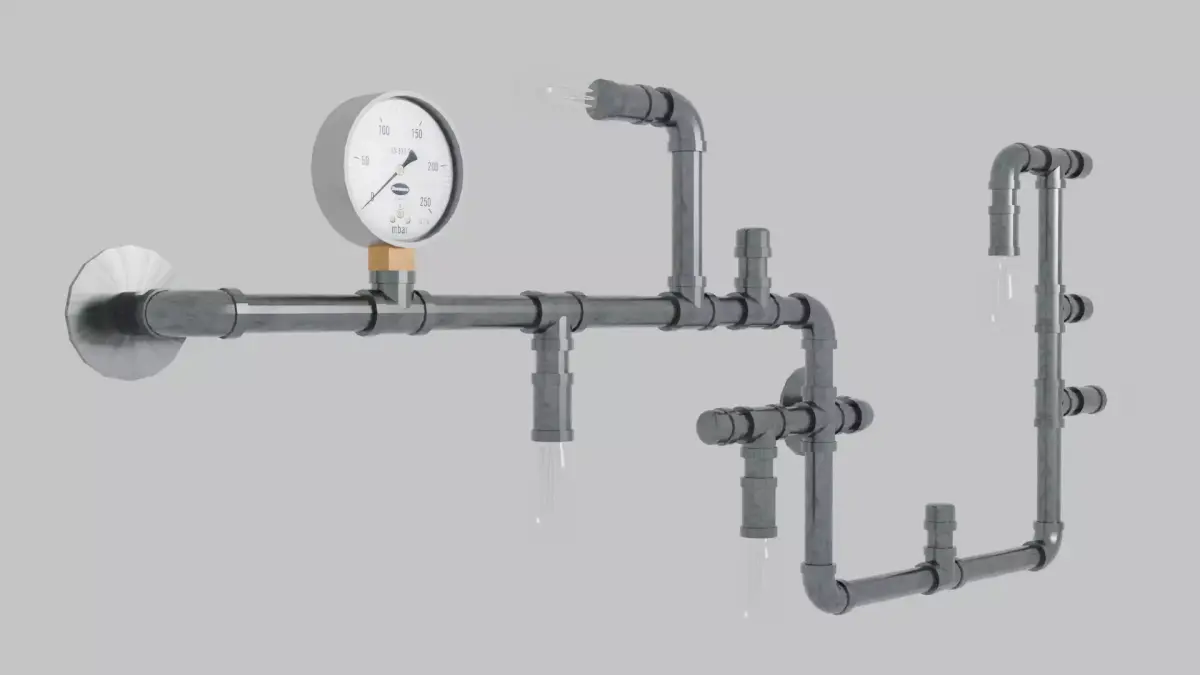 - Construction: Complex assembly of pipe segments, elbows, tees, and fittings.