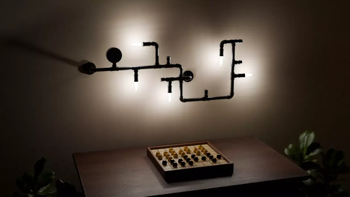 - Modularity: The main Pipes/Fittings Fixture and the Five Edison Bulbs are modeled as separate components for easy rearrangement or lighting setup.