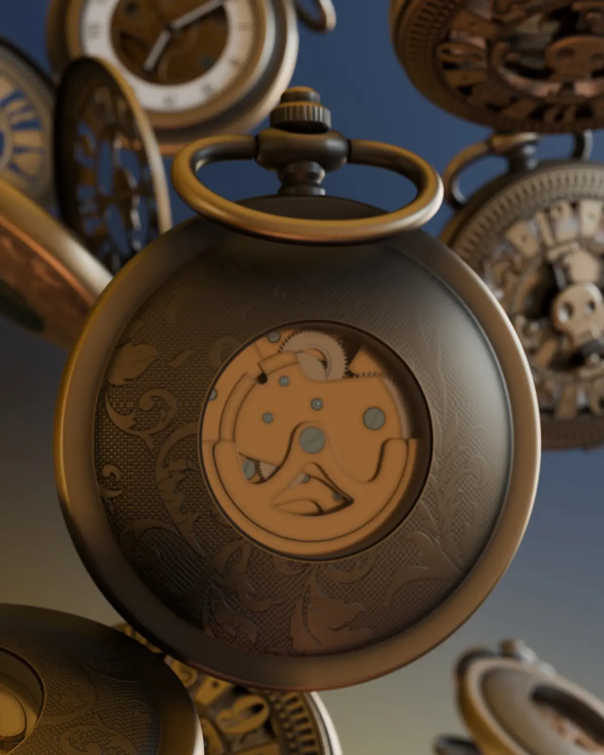 - Complete Modeling: Includes both the external and internal parts of the watch, featuring a detailed lid, dial, and a complex, functional internal mechanism.