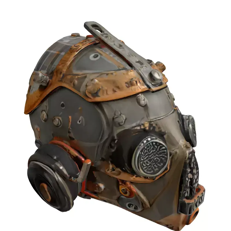 This highly detailed 3D model presents a formidable Steampunk Post-Apocalyptic Mask, blending intricate mechanical elements with a rugged, distressed aesthetic. It features a complex assembly of weathered metal plates, secured with numerous rivets and bolts, suggesting a piece of equipment built for harsh environments. The prominent circular eyeholes are covered with fine mesh grilles, while the lower facial area incorporates a distinct protective grate and a central breathing apparatus. Side-mounted mechanical components add to its industrial and utilitarian appeal. This versatile asset is ideal for a wide range of creative projects, including immersive game development as a character accessory, prop, or costume piece. It can significantly enhance visual realism in augmented reality (AR) and virtual reality (VR) experiences, providing a strong focal point. Digital artists and animators will find it suitable for creating captivating sci-fi or fantasy scenes, while its intricate design makes it an excellent candidate for detailed renders in film and cinematic productions. Furthermore, with appropriate preparation, this model could serve as a valuable reference for cosplay props or even be adapted for 3D printing. The model is anticipated to come with clean, efficient topology and well-organized UV unwrapping, ensuring optimal texture application and rendering performance. High-quality PBR (Physically Based Rendering) textures are crucial for conveying the realistic metallic sheen, rust, and wear visible in the preview. It supports various industry-standard file formats such as GLB, OBJ, FBX, USD, DAE, ABC, PLY, and STL, ensuring broad compatibility across different 3D software and engines. This model is designed to be highly detailed for static renderings and cinematics, but can also be optimized for real-time applications where performance is critical, making it a truly adaptable asset.