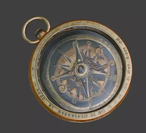 Tagssteampunk, compass, 3d model, prop, victorian, industrial, clockwork, gears, navigation, game asset, brass, navigation tool