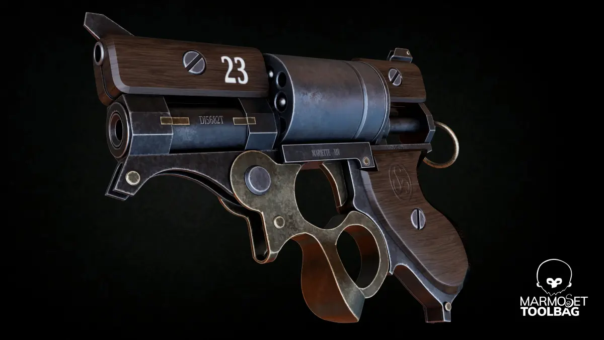 This Steampunk revolver low poly High Poly game ready gun model is done by maya 2023 and textured in substance painter