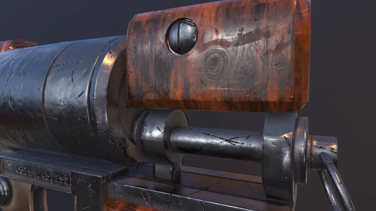 Weapon was rendered in Marmoset Toolbag with newMetalness/Glos Workflow that actually become the industry standard.