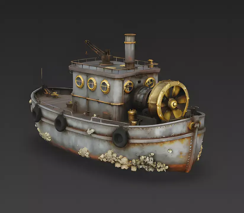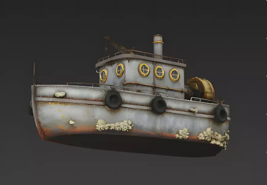 Files Included: FBX, GLB, OBJ, STL, ZIP (Textures). Quick Tip: The Barnacles add a lot of detail to the silhouette. If you are animating the boat moving through water, add a Wetness shader to the hull just above the barnacle line to make the metal look slick and splashed.