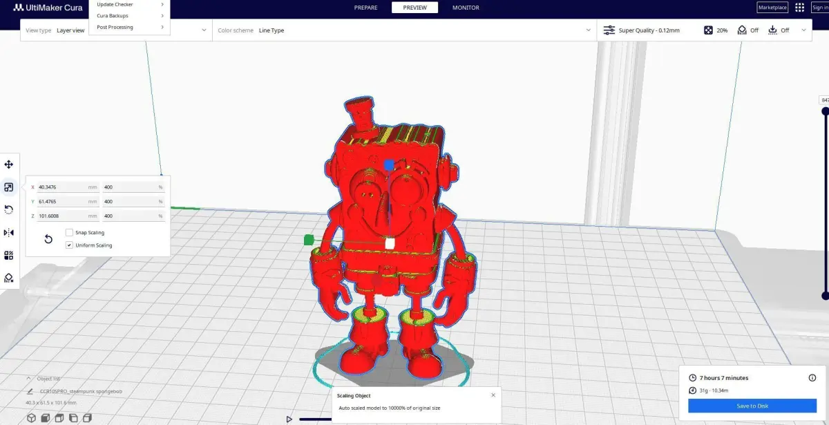 This 3D model printed steampunk SpongeBob transforms the iconic underwater character into a fantastical figure straight out of a retro-futuristic world. Featuring brass goggles, gear-driven limbs, and a metallic sponge texture, this reimagined version of SpongeBob brings a quirky blend of nautical whimsy and industrial flair. It's a perfect collectible for fans who love creative mashups and imaginative, detailed art pieces.