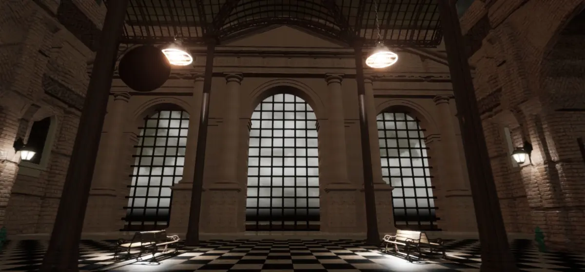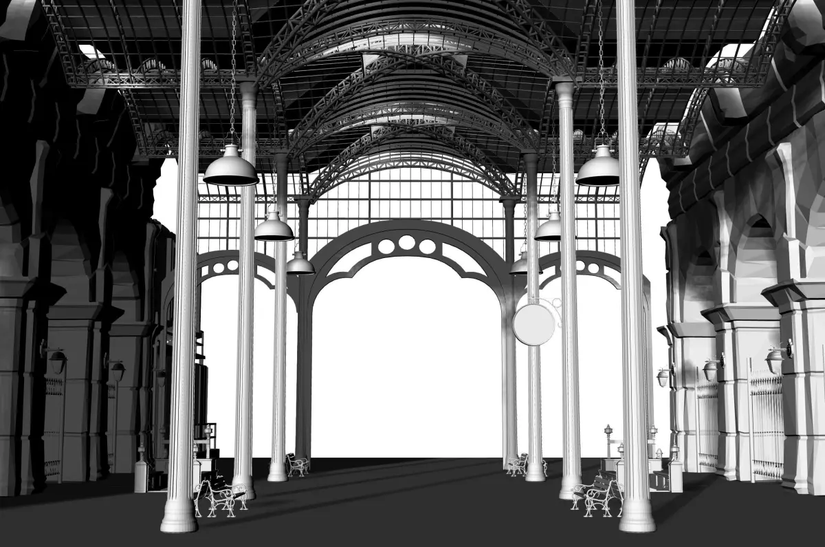 Inspired by Victorian-era cities like London, Paris, New York and Boston, the station is made up of steampunk elements using steam technology, with noisy rattling mechanical gears and pounding pistons. It is a foggy, humid and muddy environment.