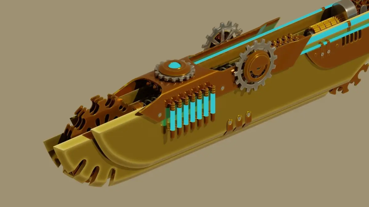 Steampunk style sword high poly model, created with Blender. All quads topology, 4k diffuse texture, simple color with edge highlight (unzip to the same folder).
