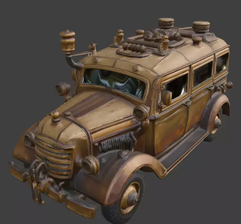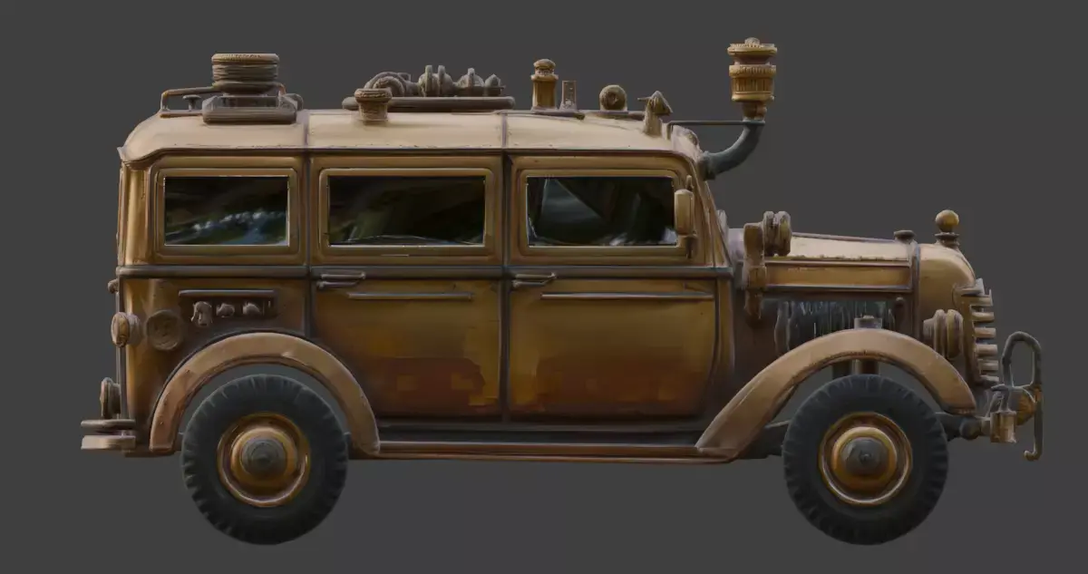 Tagssteampunk, troop transport, military vehicle, armored car, truck, victorian, industrial, brass, iron, steam engine, war machine, transport, 3d model, game asset, prop