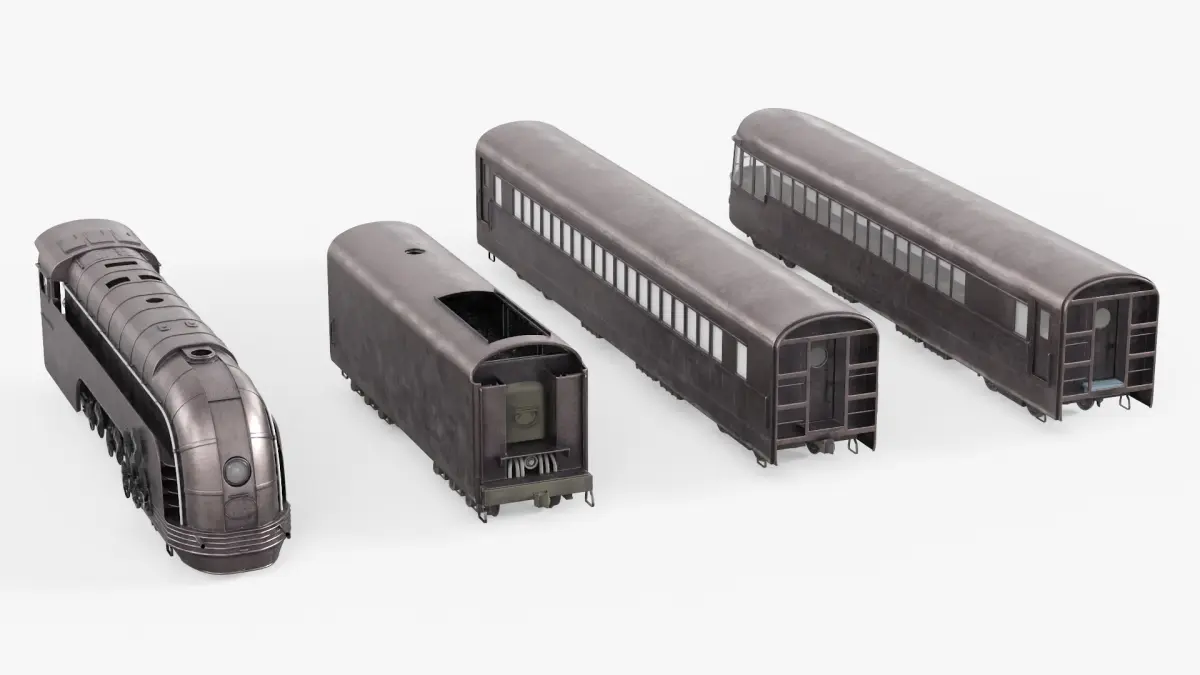 Steampunk Vehicle Collection is a three-dimensional model set featuring a retro-futuristic submarine, an airship, and a streamlined train, all designed in a distinctive steampunk aesthetic.