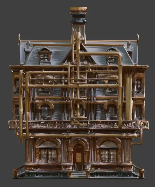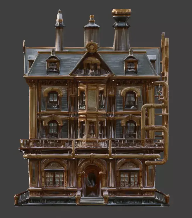 Tagssteampunk, building, victorian, industrial, city, gears, steam pipes, architecture, facade, urban, 3d model, game asset, environment, manor, clockwork
