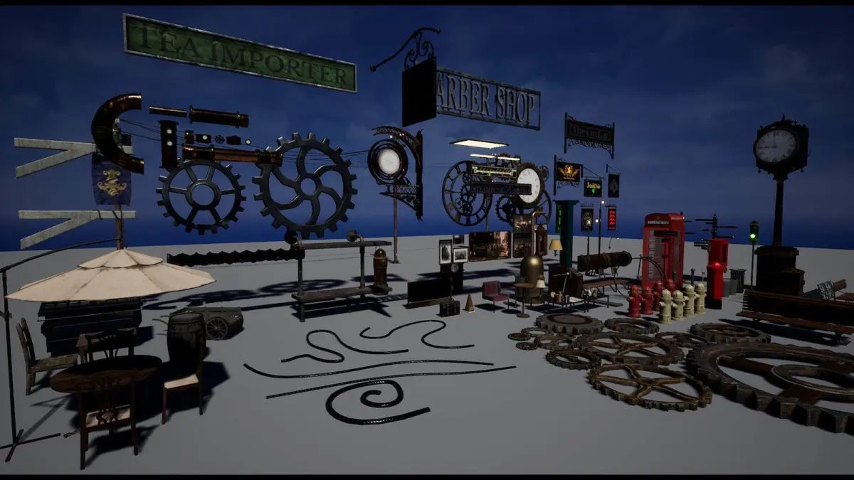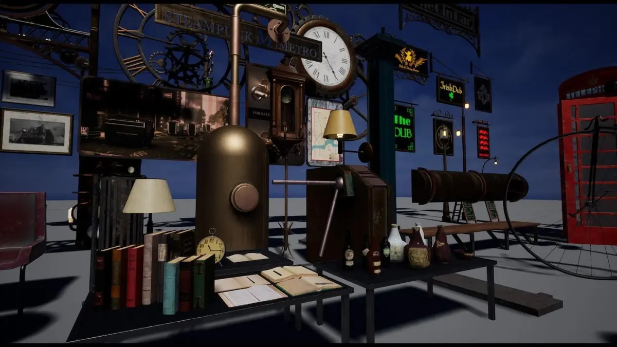Set of SteamPunk/Victorian Props with a very wide range of different props, which you can use for populating both interior and exterior places. Lots of attention was paid to details and optimization. Set includes 164 unique assets and some even has Material/color variations.