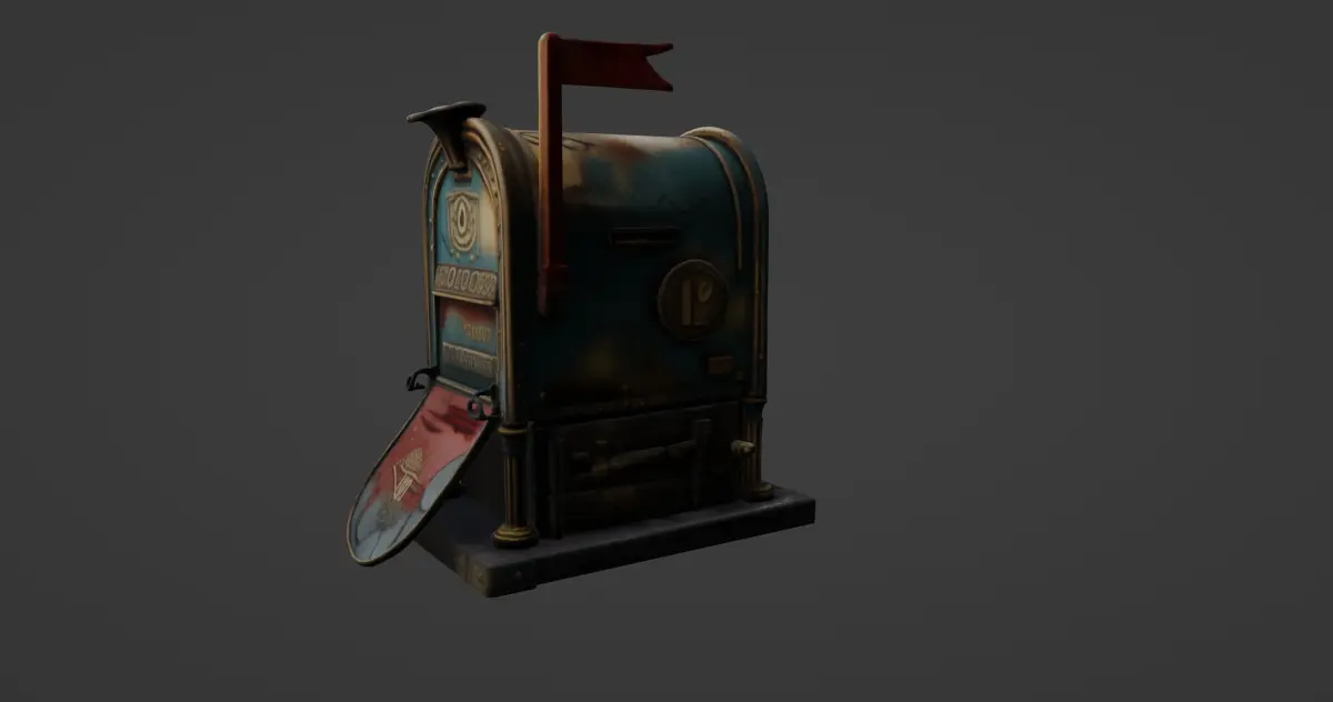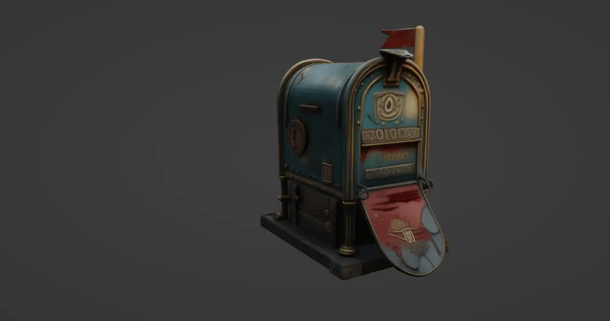 This highly detailed 3D model features a vintage standing mailbox with a distinct steampunk aesthetic. Crafted with an artistic blend of aged copper and worn paint textures, the mailbox displays elegant metal plating, riveted seams, and ornate engravings that hint at both historical charm and fantastical design. A bold red flag signals incoming messages, while the rich patina and visible wear add realism and narrative depth to the model.The front flap is rendered open, revealing inner paneling with intricate embossing and antique insignia, as though it belonged to a bygone postal guild. Heavy base supports and wooden crate-like elements ground the structure, making it ideal for storytelling, architectural visualization, or as a prop in fantasy and steampunk-themed environments.This model is downloadable in .gmb format with texture included, ensuring seamless integration into your scene with authentic surface realism. For broader compatibility, it is also available in .fbx format, suitable for most modern 3D applications and game engines.Whether used in games, animation, or immersive VR experiences, this steampunk vintage mailbox adds a unique touch of nostalgia, craftsmanship, and narrative opportunity to any digital environment.