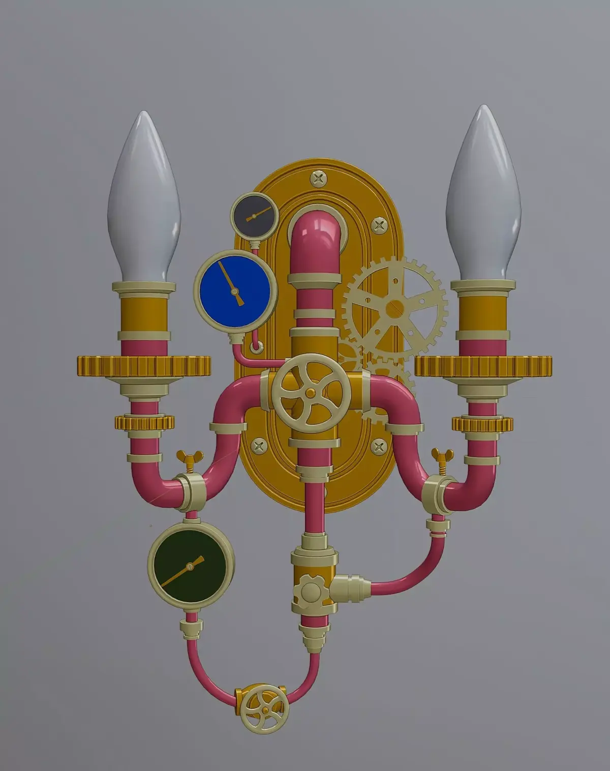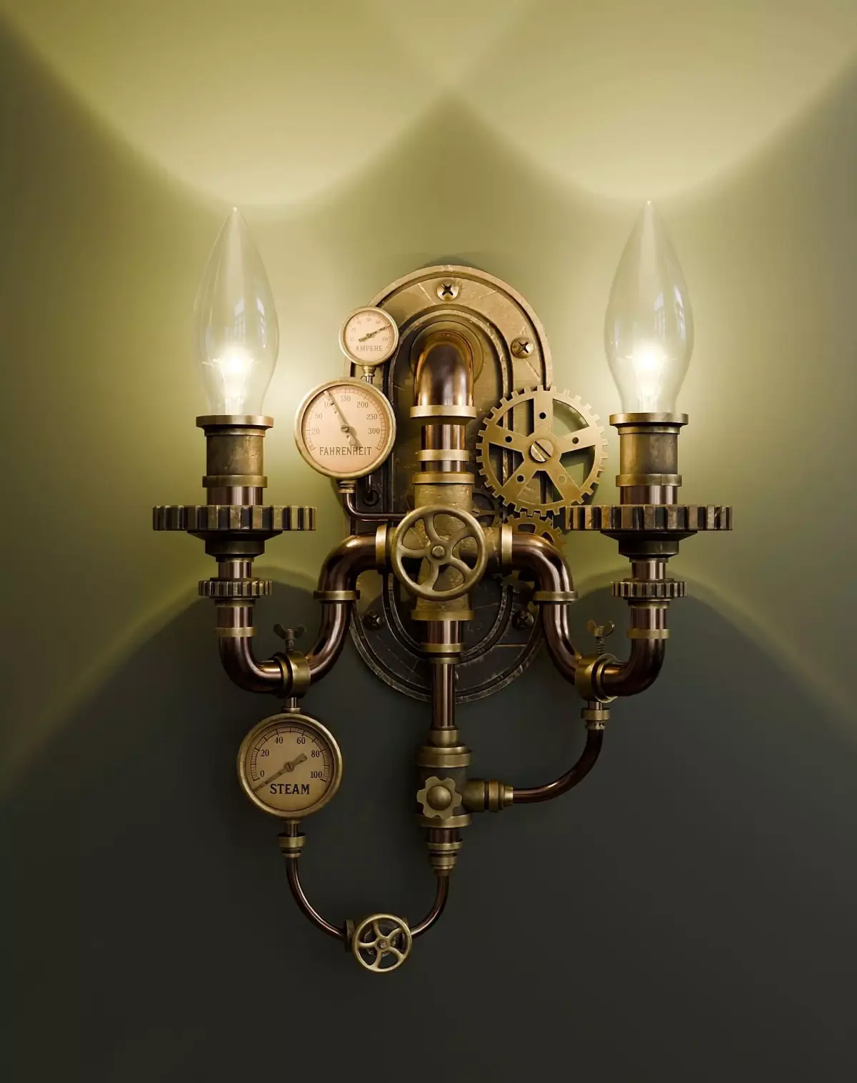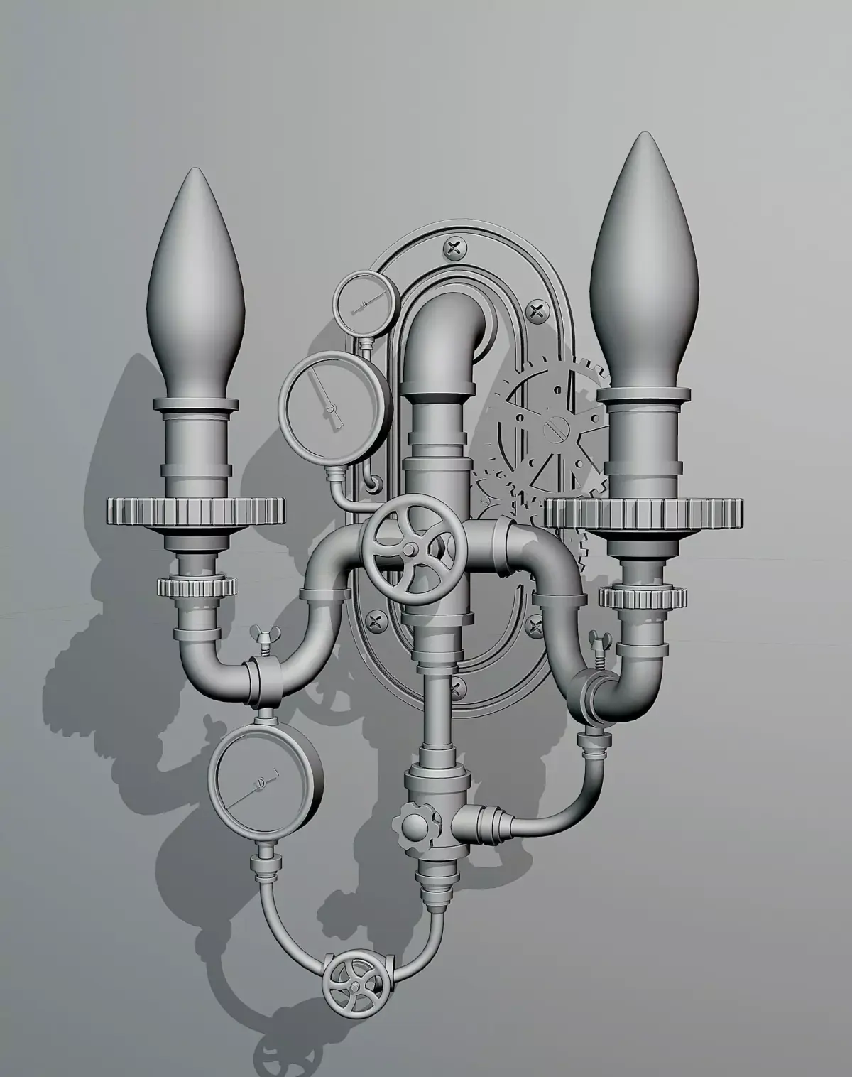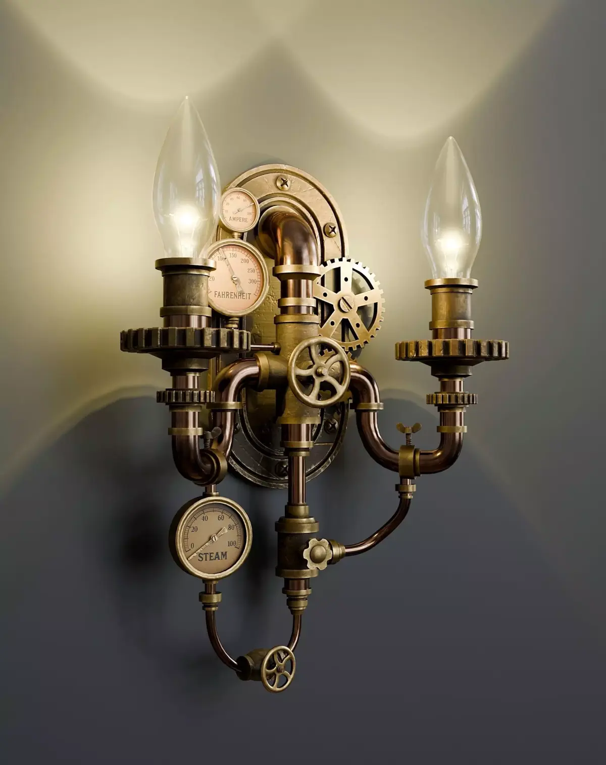 Steampunk Wall Lamp. (sconce) The model consists of three objects: a sconce and two light bulbs (the objects are not combined). The sconce textures (4096x4096 resolution) were baked in Substance Painter and packed into an archive. The sensor textures (jpg images) are packed into a separate zip archive. The light bulbs are made from the original Blender material.