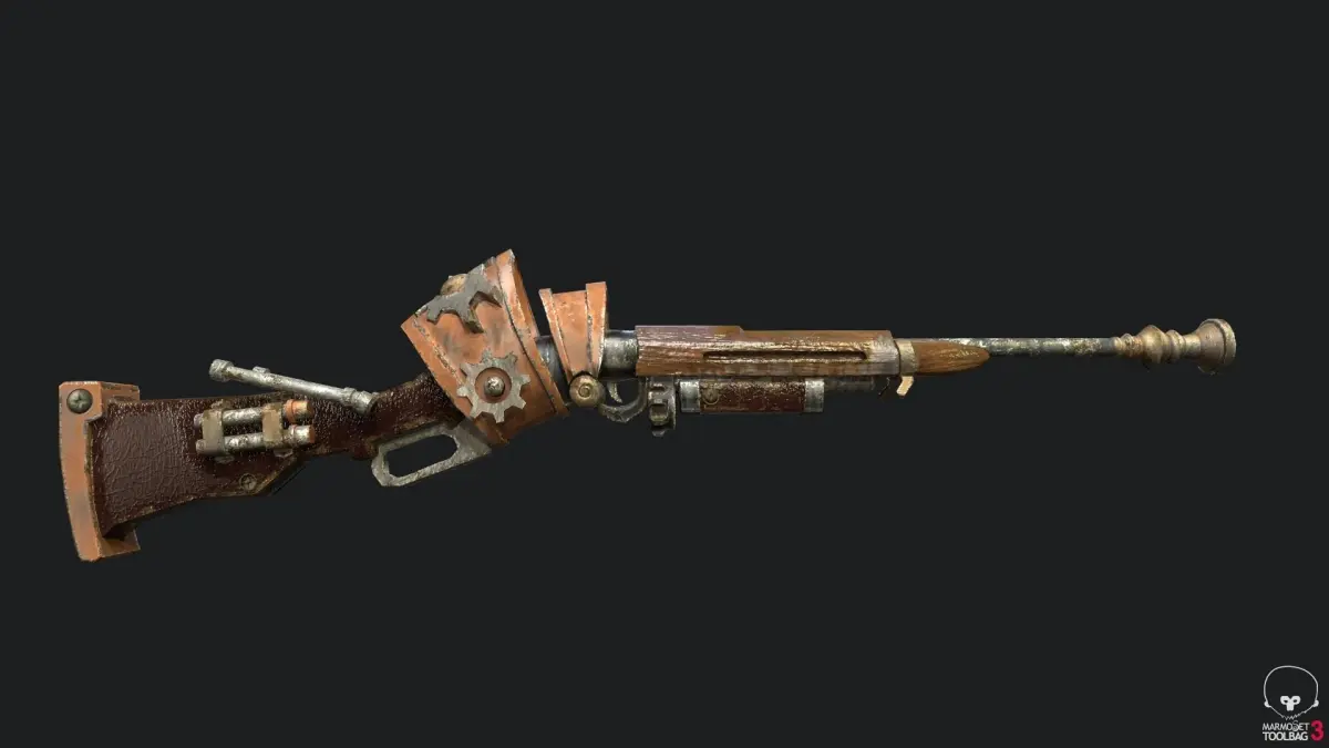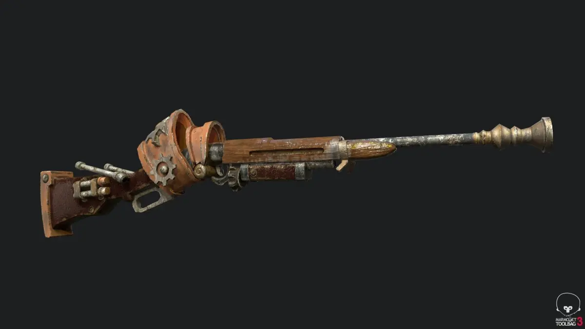 A Steampunk Winchester made for a game jam ready for a game engine it has 5117 verts 5022 polys and 9722 tris and the textures are PBR and the sizes are 2048 x 2048 and includes Diffuse, Roughness, Normal, AO and Metallic if you need game assets or STL files I am available for commission works.