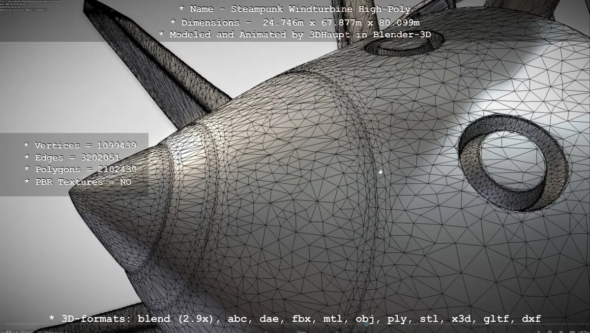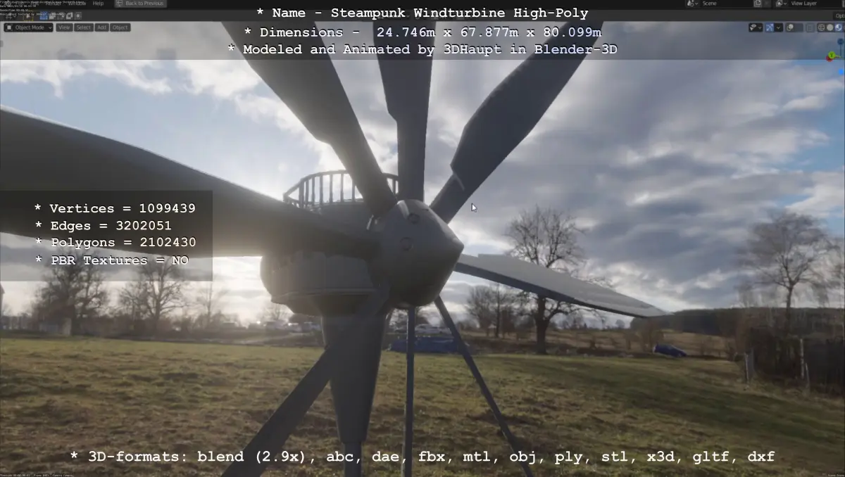 BLEND (Blender, filesize: 3.22 GB), OBJ (OBJ, filesize: 3.19 GB), FBX (Autodesk FBX, filesize: 3.12 GB), GLTF (glTF, filesize: 3.66 GB), ABC (Alembic, filesize: 3.08 GB), DAE (Collada, filesize: 3.41 GB), DXF (DXF, filesize: 3.03 GB), STL (Stereolithography, filesize: 3.14 GB)