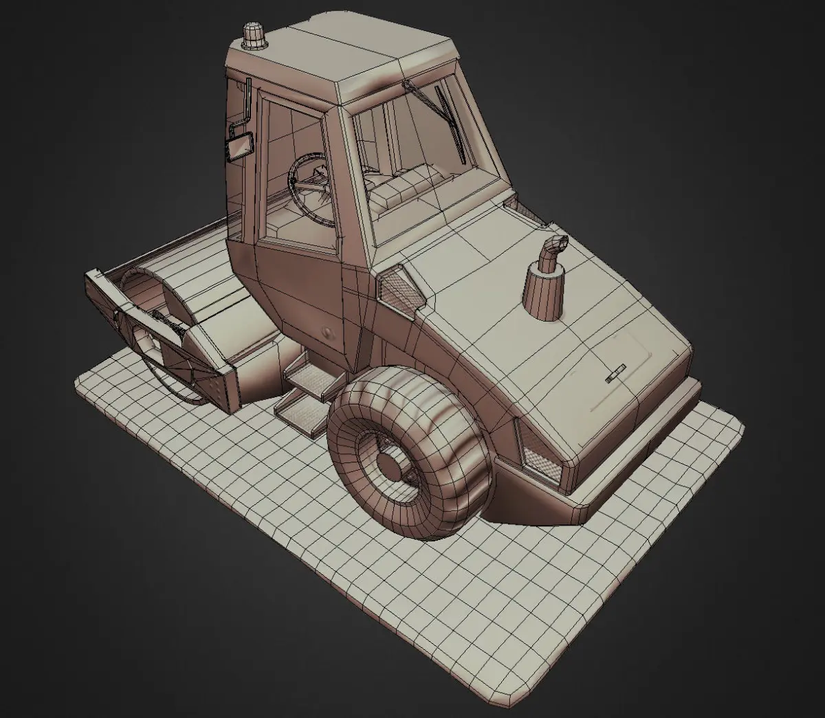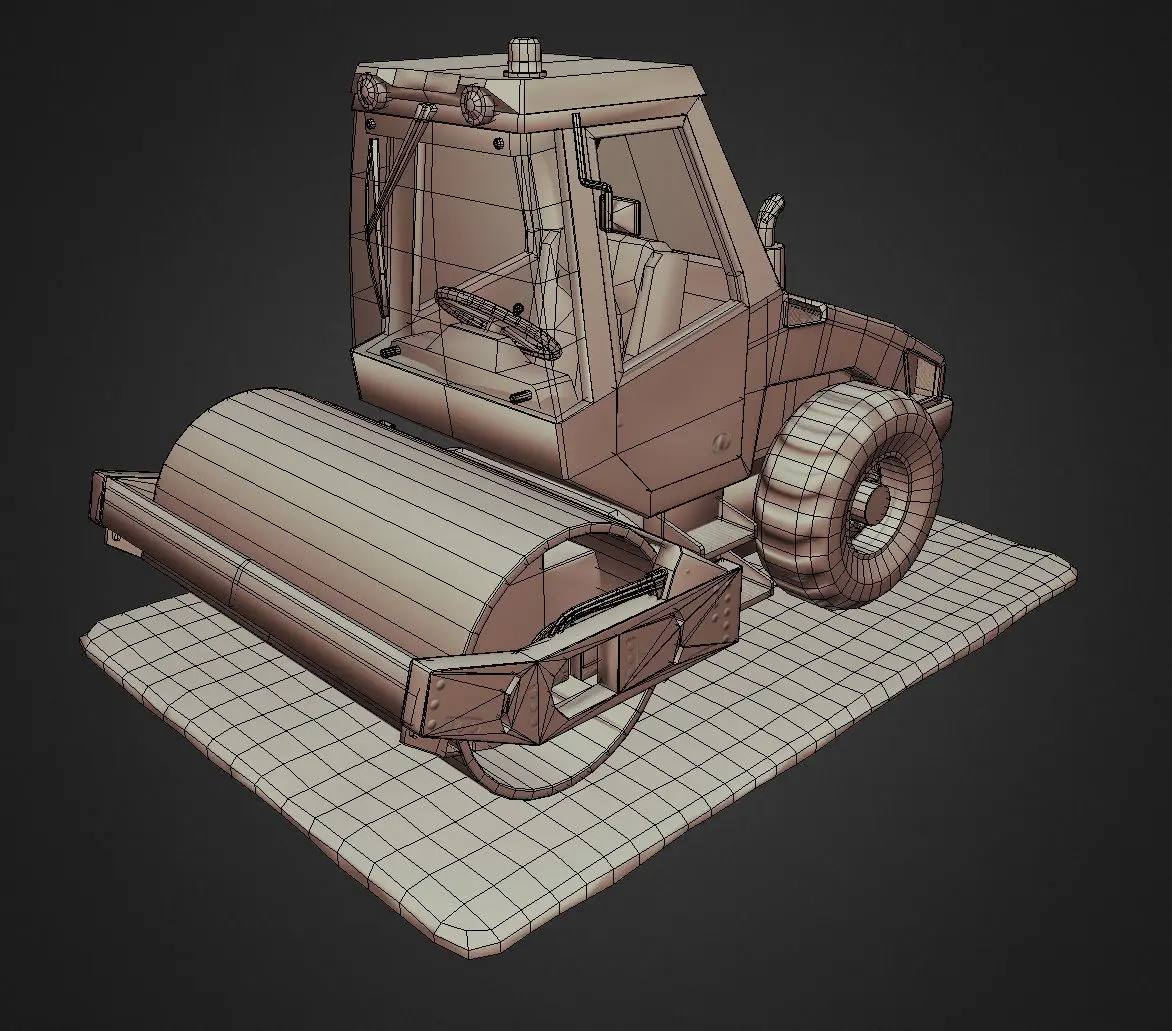 Low-poly steamroller truck model with clean PBR textures, ideal for real-time application.