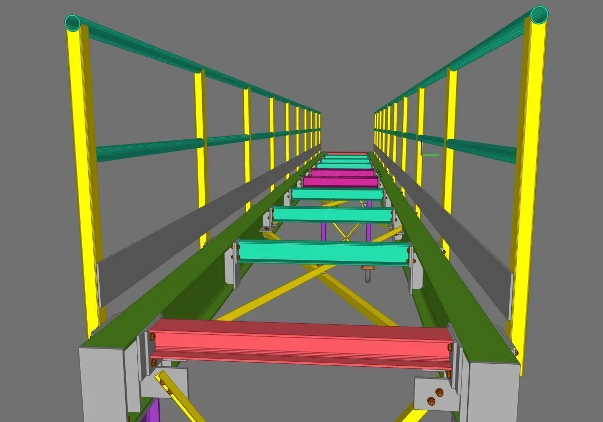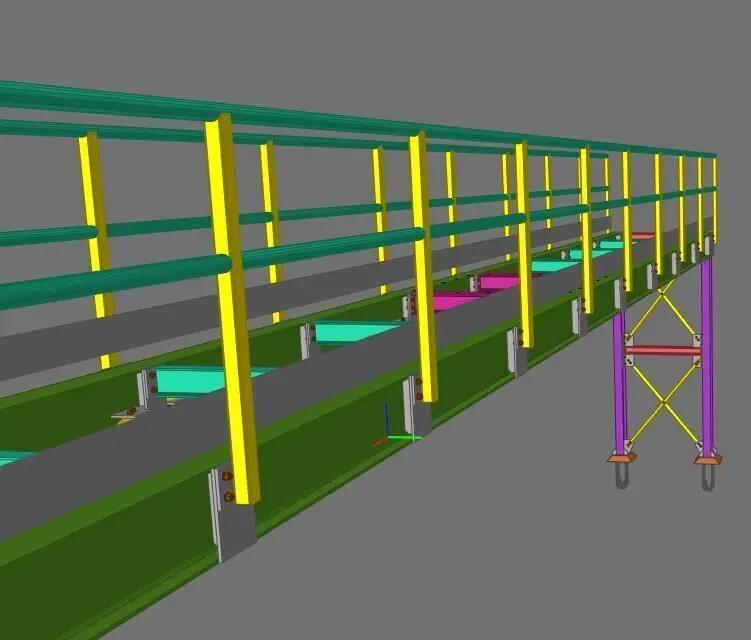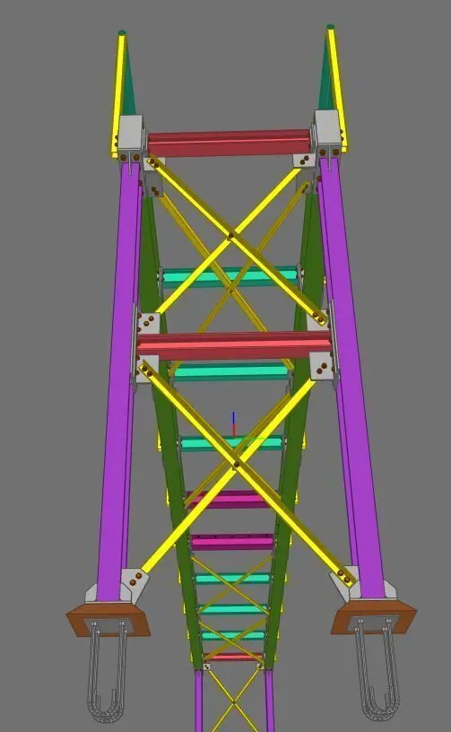 This model represents a detailed steel bridge structure, modeled in Tekla Structures, suitable for architectural and structural engineering use. The model includes beams, columns, bracing, and base plate elements, designed using BIM methodology and exported in multiple formats.